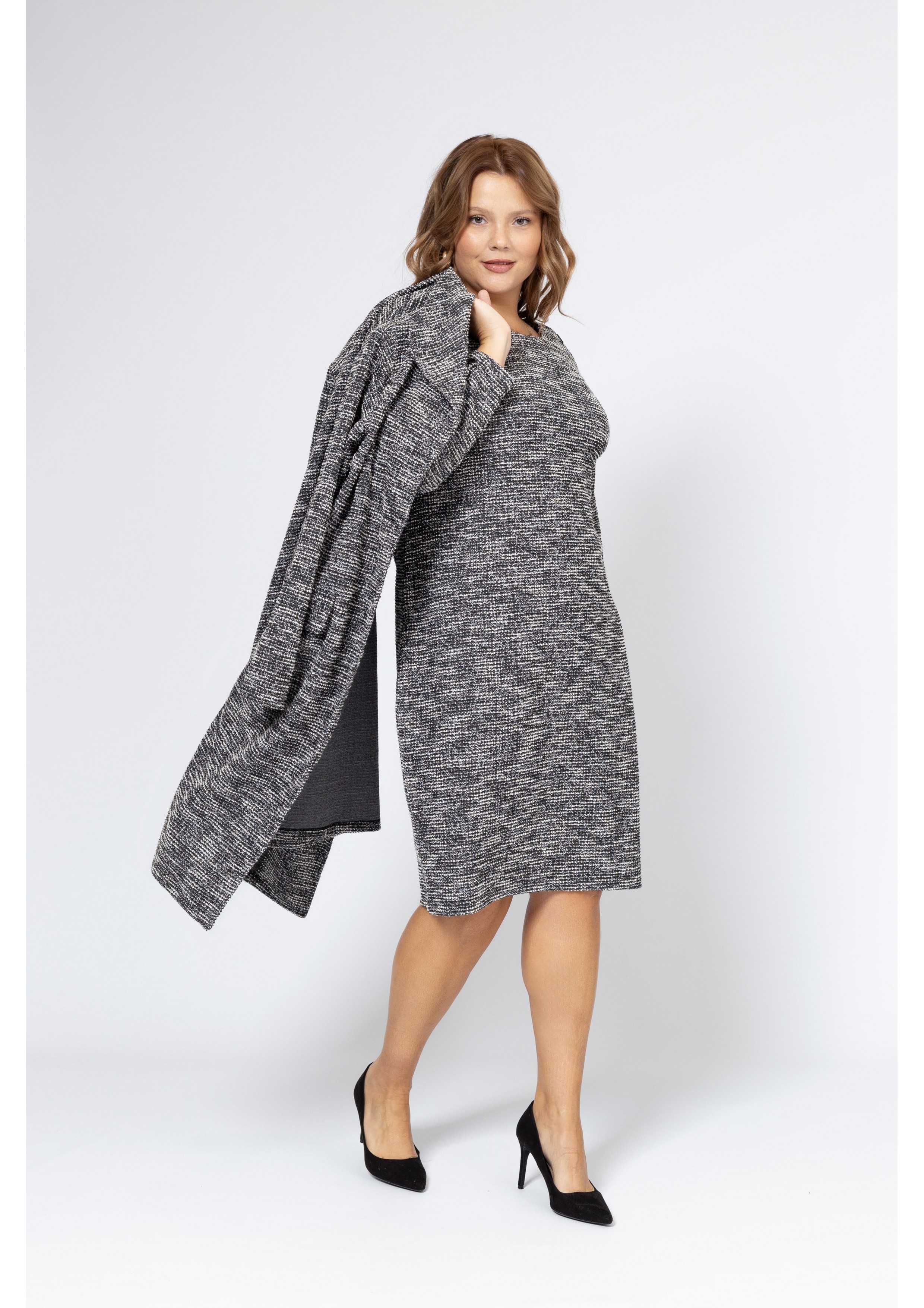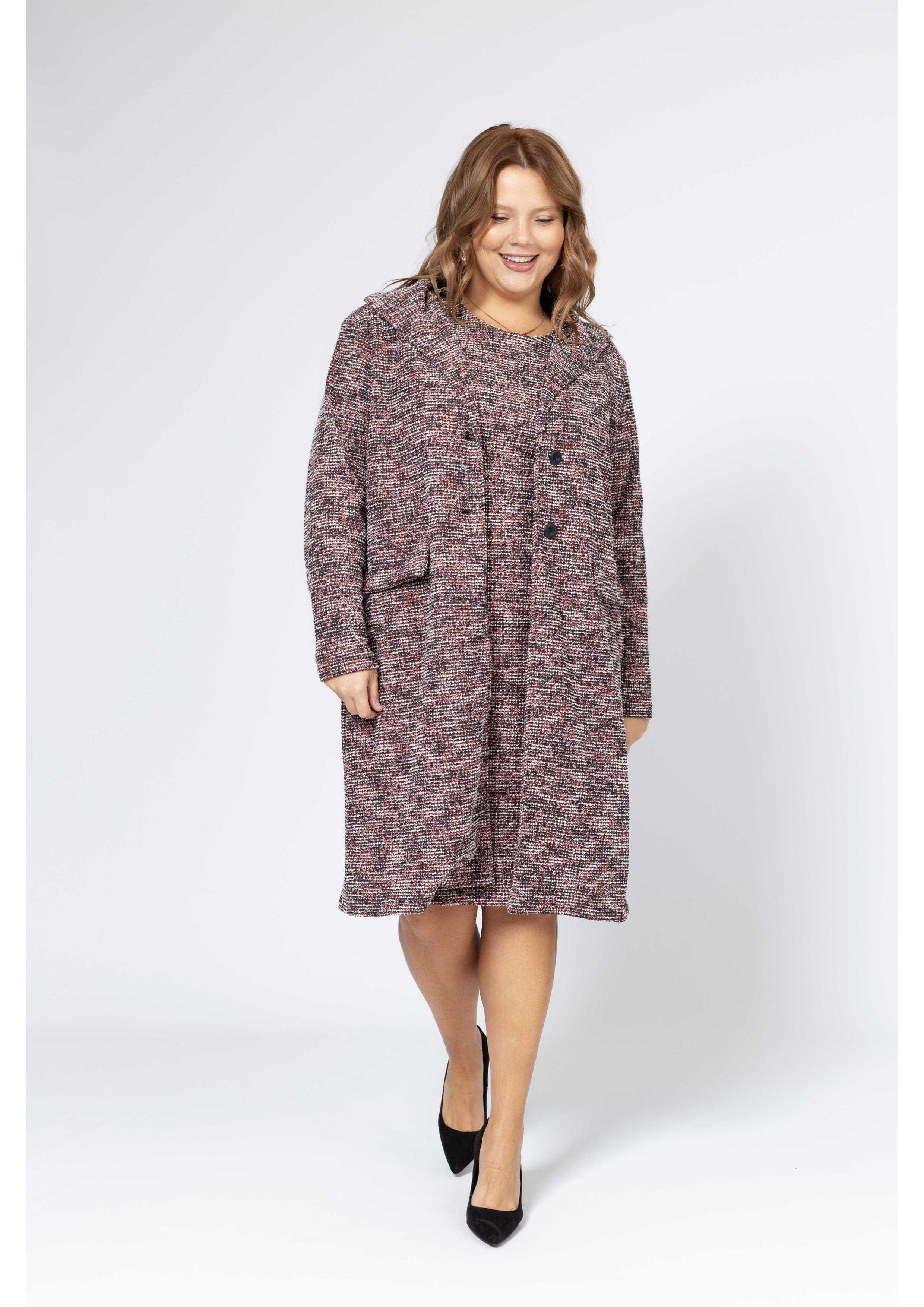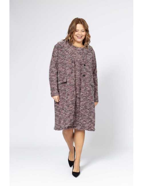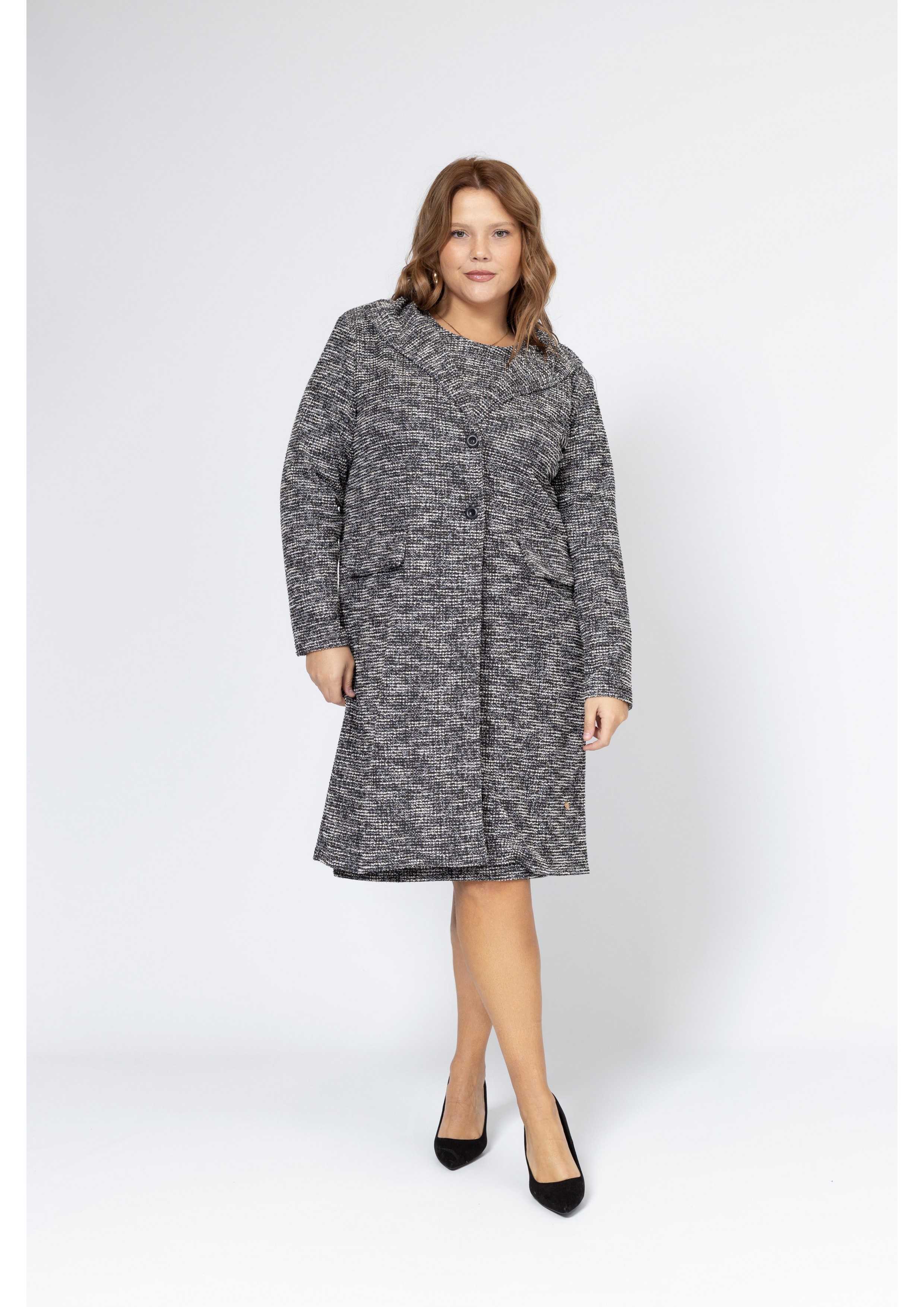 Abrigo de punto tipo chanel, totalmente cerrado en la parte delantera, dos solapas, manga larga, dos botones en la parte delantera. Colección: Otoño Invierno Modelo: Altura 1.70m y viste la talla 2XL.