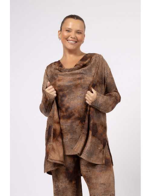 Abrigo de tejido de canalé, manga larga, aberturas laterales, modelo ligeramente evasé. Colección: Otoño Invierno Disponible en Tallas Grandes Producto de diseño y fabricación propia. Somos una marca de confección de ropa con más de 50 años de experiencia Modelo: Altura 1.70m y está usando la talla XL. Composición: 95% Poliéster 5% Elastano