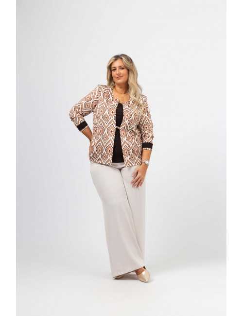 252043 - Conjunto em malha lisa e estampada Coleção Primavera Verão Tamanhos Grandes