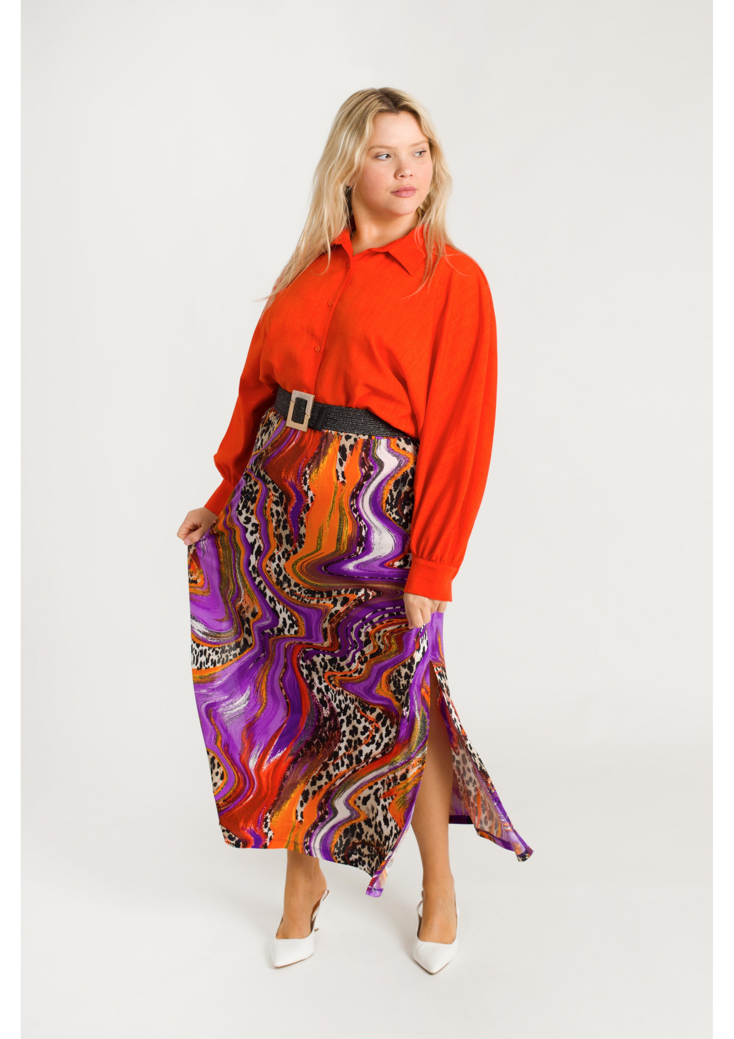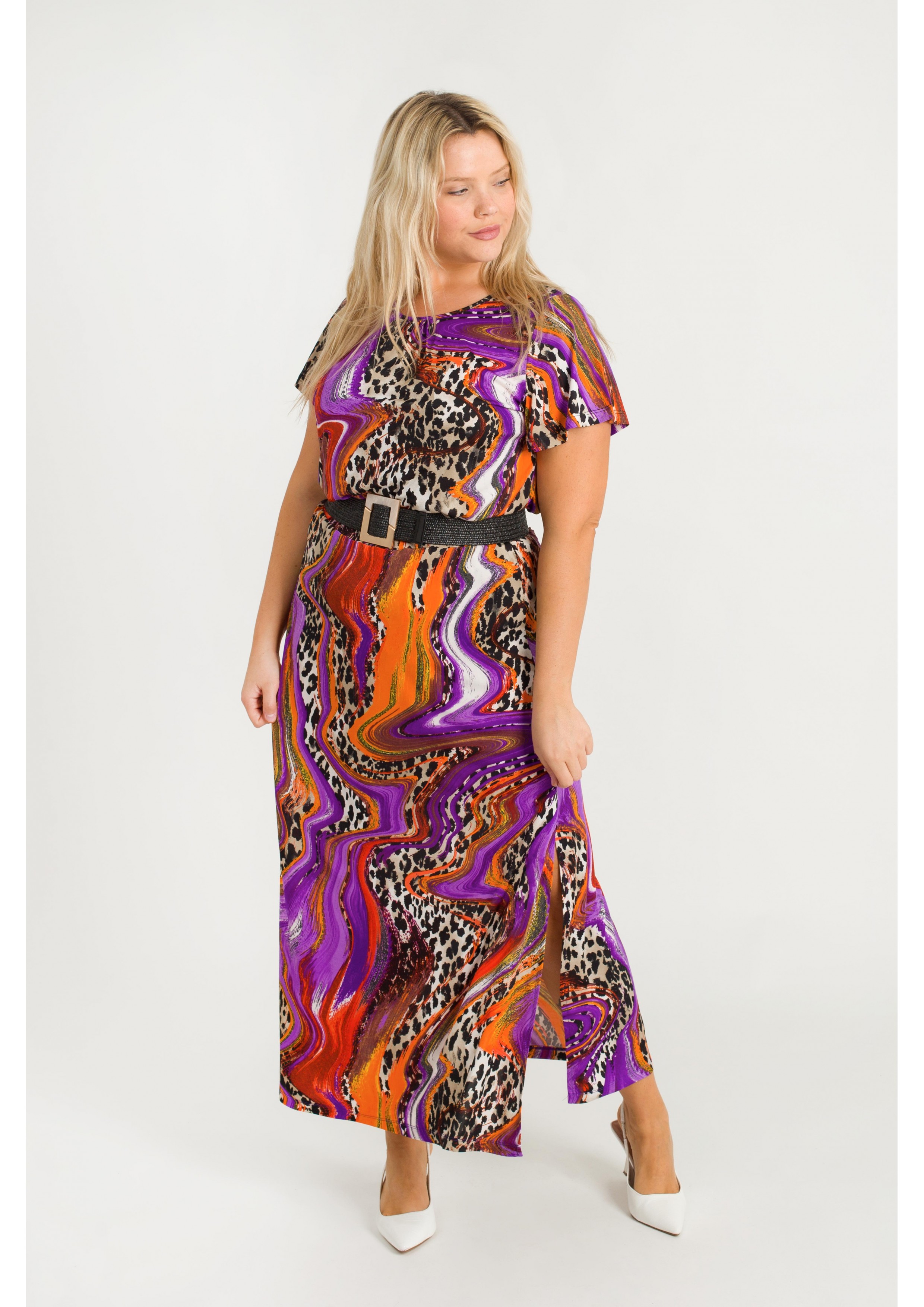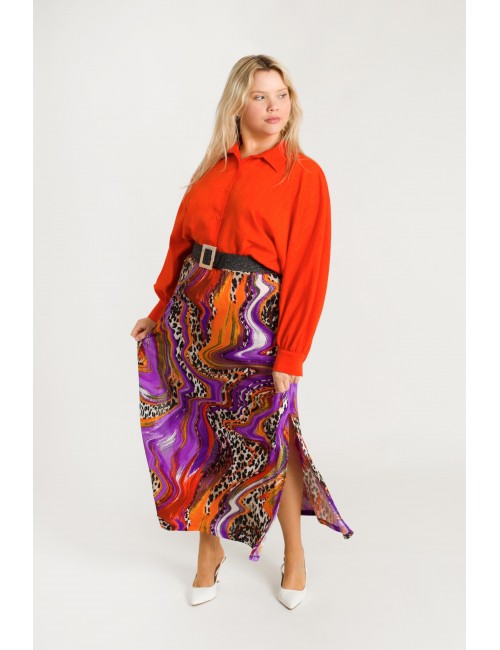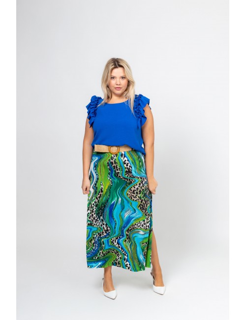 Falda larga de punto estampado, aberturas laterales, cintura con elástico, trabillas y cinturón Colección: Primavera Verano Disponible en Tallas Grandes Producto de diseño y fabricación propia. Somos una marca de confección de vestuario con más de 50 años de experiencia. Modelo: Altura 1.70m y está vistiendo la talla 2XL. Composición: 94% Poliéster 6% Elastano