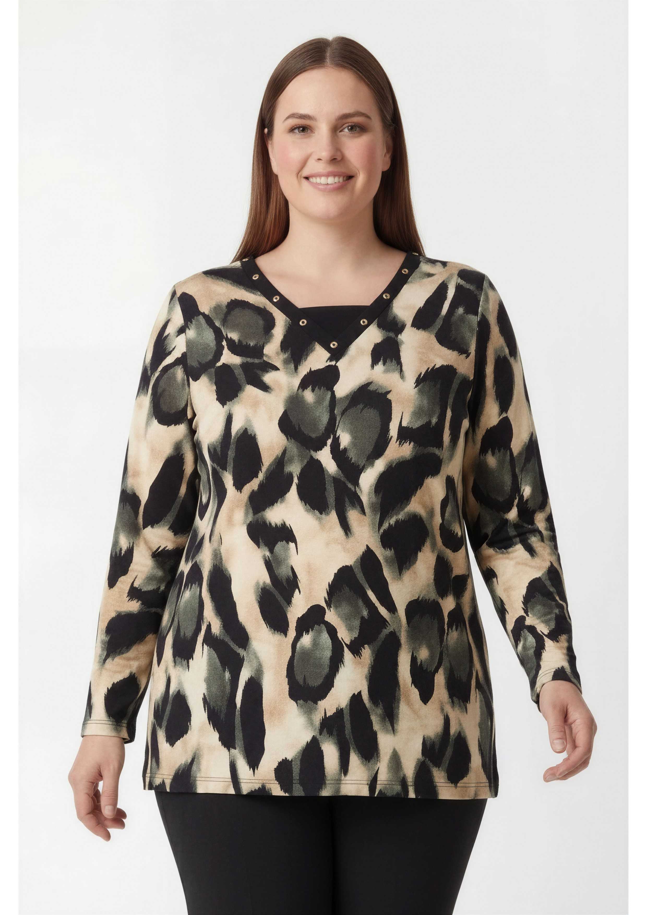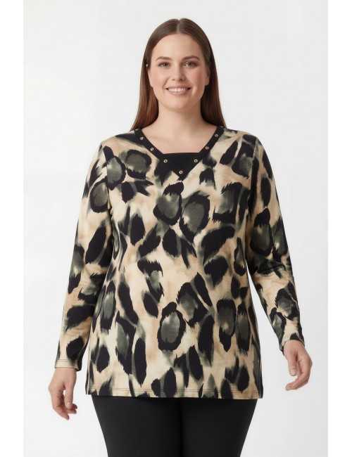 251173 - Camisola em malha estampada tons pretos Coleção Outono Inverno Tamanhos Grandes