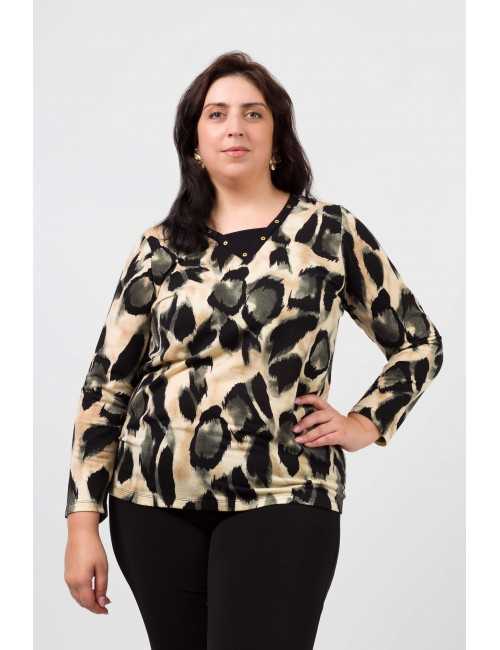 251173 - Camisola em malha estampada tons pretos Coleção Outono Inverno Tamanhos Grandes