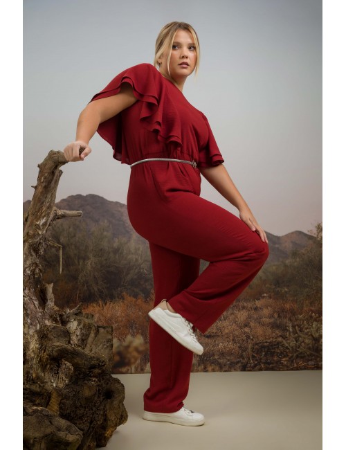 Mono con manga caída y volantes en los hombros. Colección: Primavera Verano Modelo: Altura 1.70m y está vistiendo la talla 2XL.