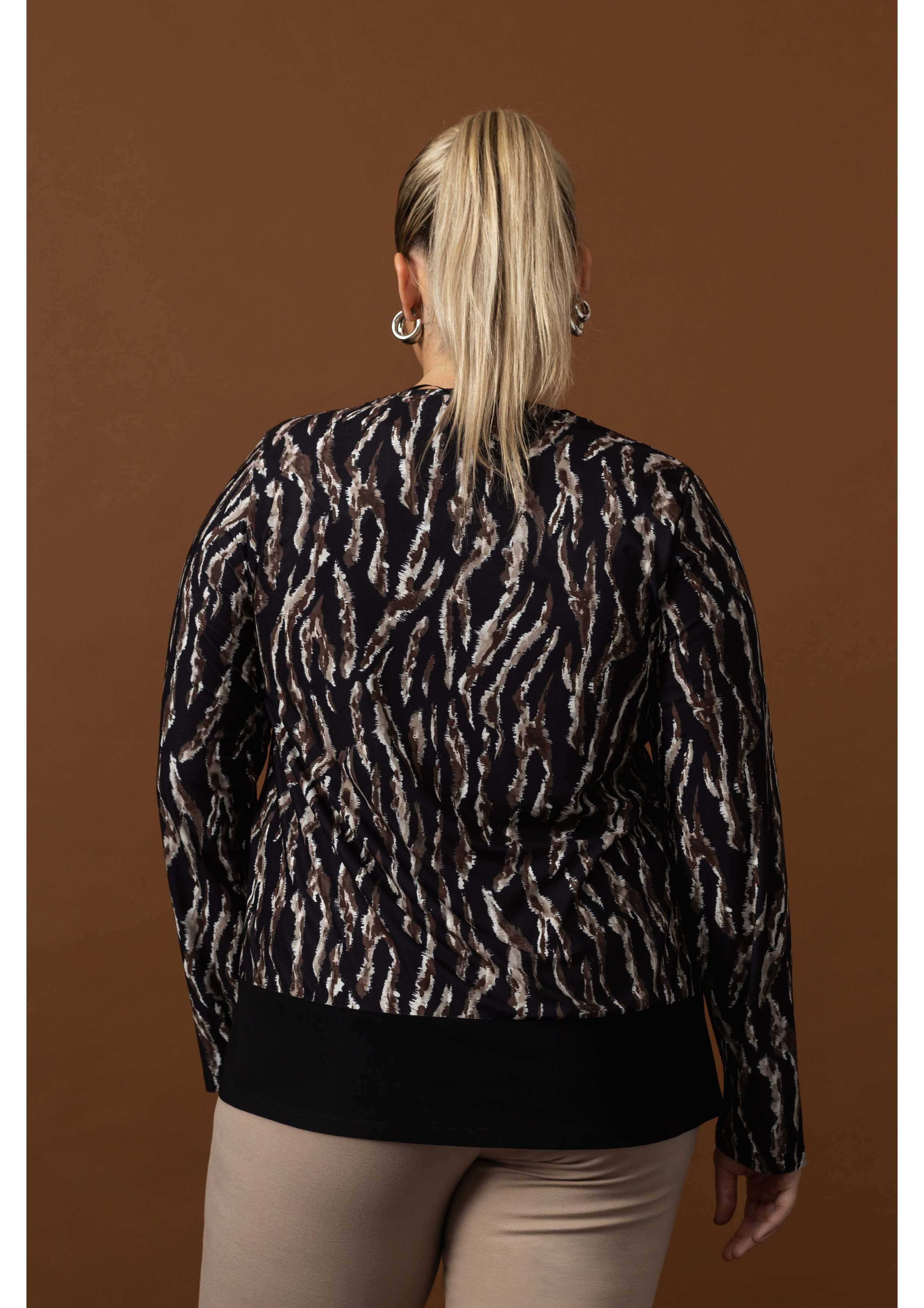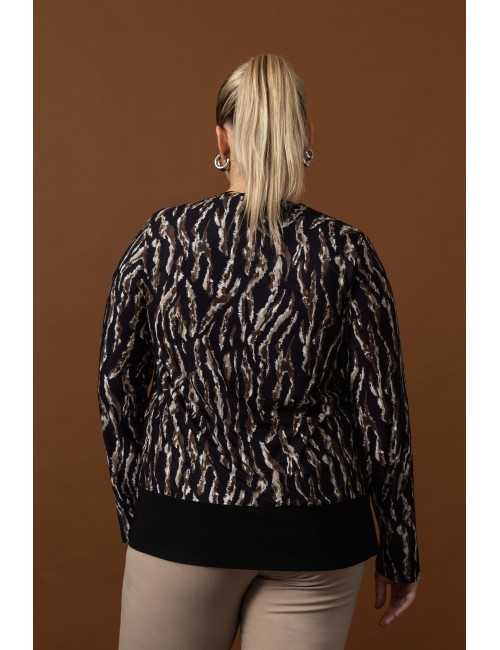 Jersey de punto estampado, con borde liso en la parte inferior. Cuello redondo. Manga larga. Colección: Otoño Invierno Disponible en Tallas Grandes Producto de diseño y fabricación propia. Somos una marca de confección de ropa con más de 50 años de experiencia Modelo: Altura 1.70m y está vistiendo la talla 2XL, en color negro. Modelo: Altura 1.63m y está vistiendo la talla 2XL, en color beige. Composición: 95% Poliéster 5% Elastano