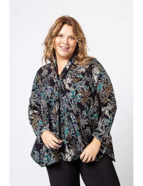 Túnica de punto estampada, manga larga con escote en pico, base en picos, bufanda con pompón en los extremos. Colección: Otoño Invierno Disponible en Tallas Grandes Producto de diseño y fabricación propia. Somos una marca de confección de ropa con más de 50 años de experiencia Modelo: Altura 1.70m y está vistiendo la talla 2XL. Composición: 95% Poliéster 5% Elastano