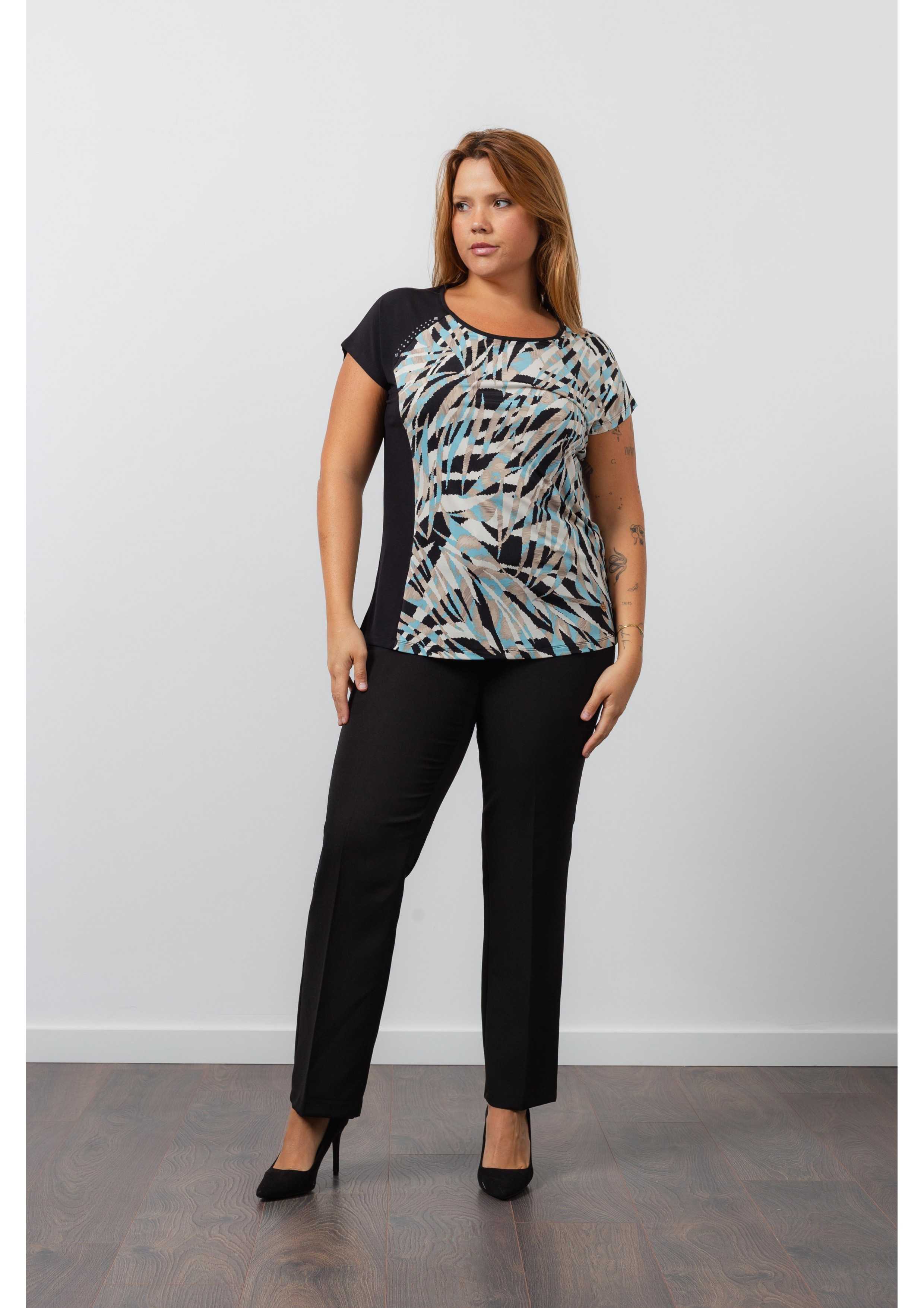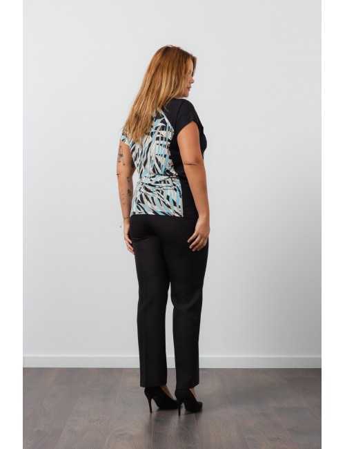 Pantalón de tejido liso, bolsillos laterales, cierre y botón en la parte delantera. Elástico solo en los laterales, trabillas en el cinturón. Colección: Primavera Verano Disponible en Tallas Grandes Producto de diseño y fabricación propia. Somos una marca de confección de ropa con más de 50 años de experiencia Modelo: Altura 1.70m y está usando la talla 42. Composición: 95% Poliéster 5% Elastano