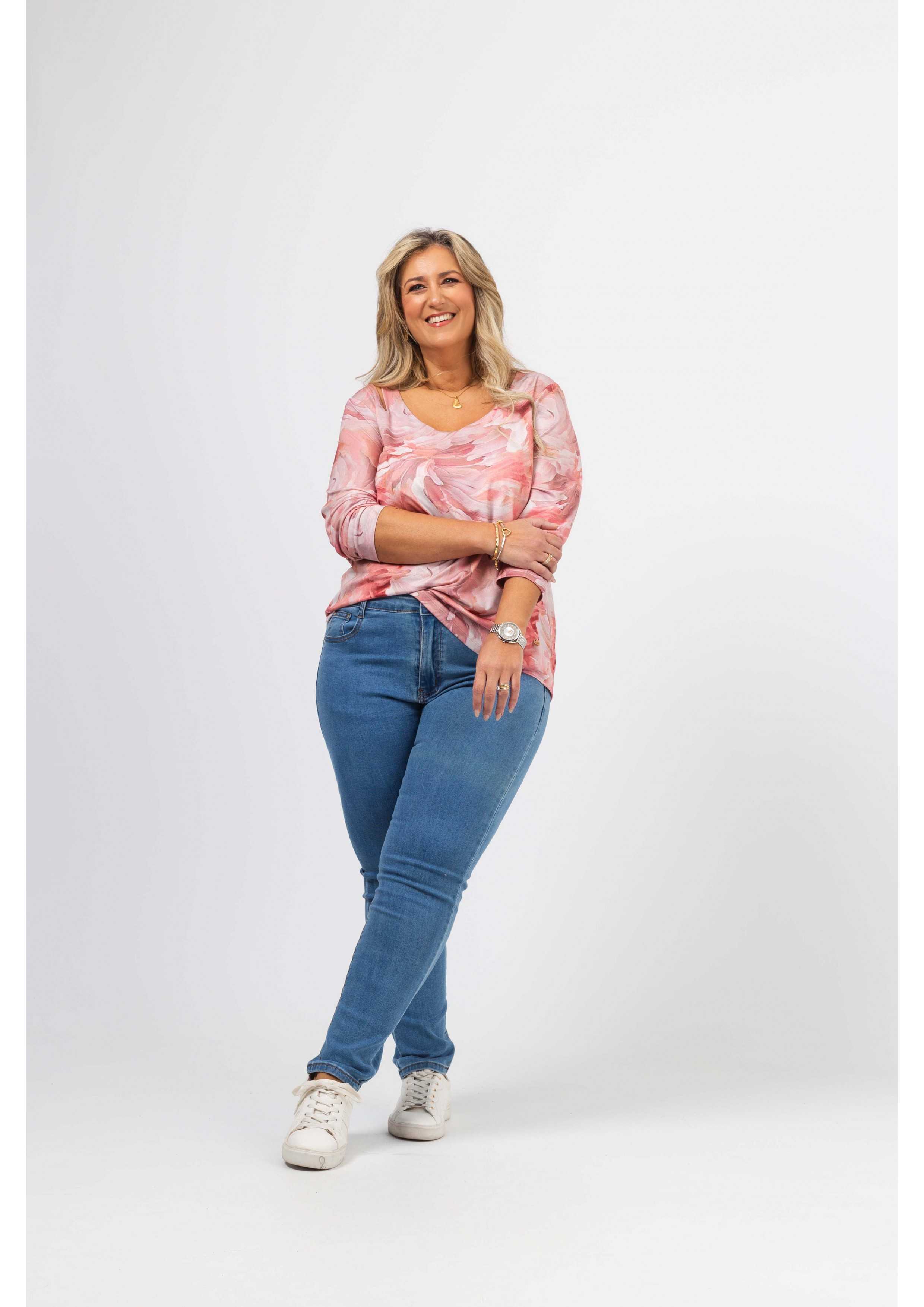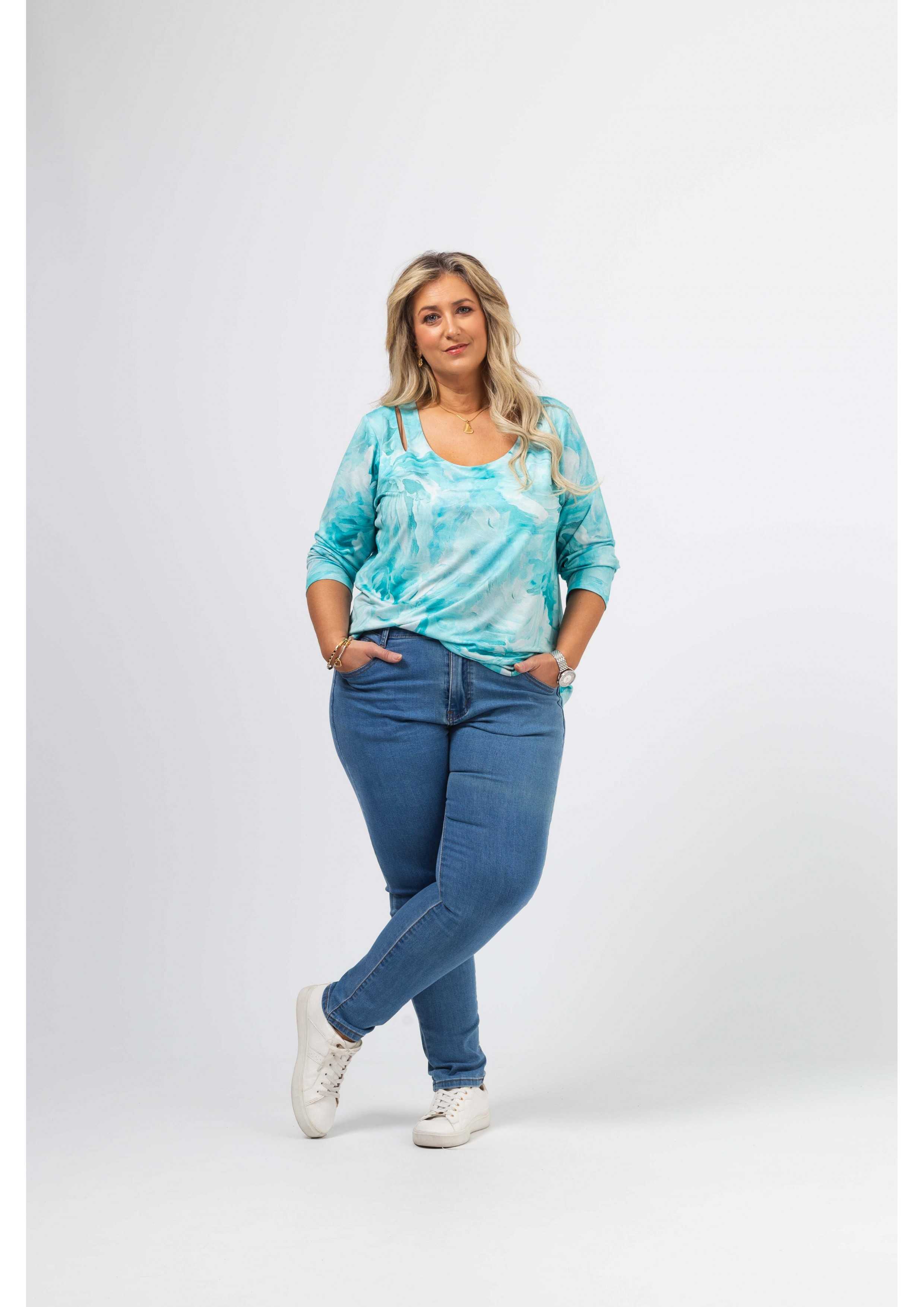 Pantalón de mezclilla Colección: Primavera Verano Disponible en Tamanhos Grandes Producto de diseño y fabricación propia. Somos una marca de confección de ropa con más de 50 años de experiencia Modelo: Altura 1.70m y está vistiendo la talla 44.
