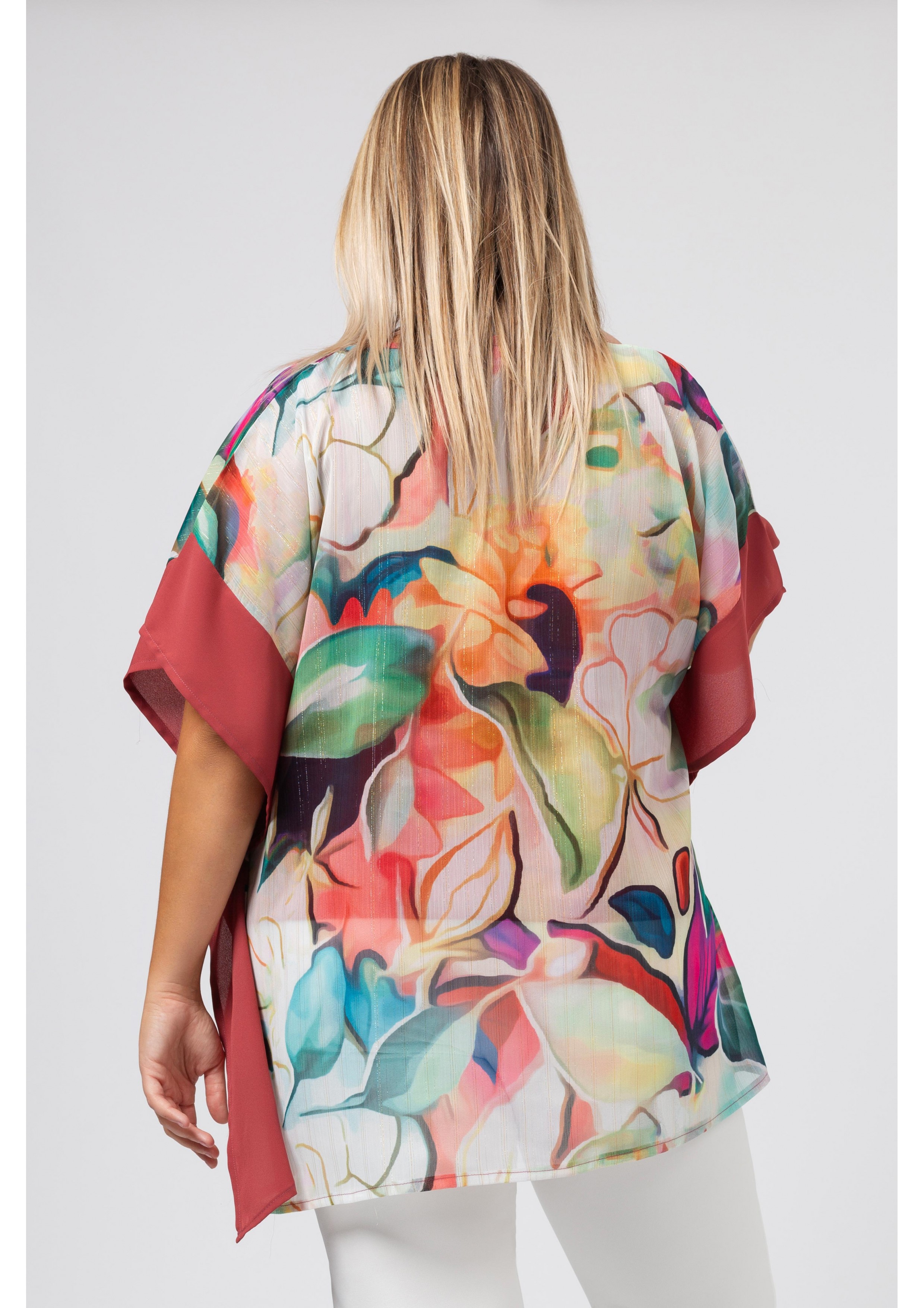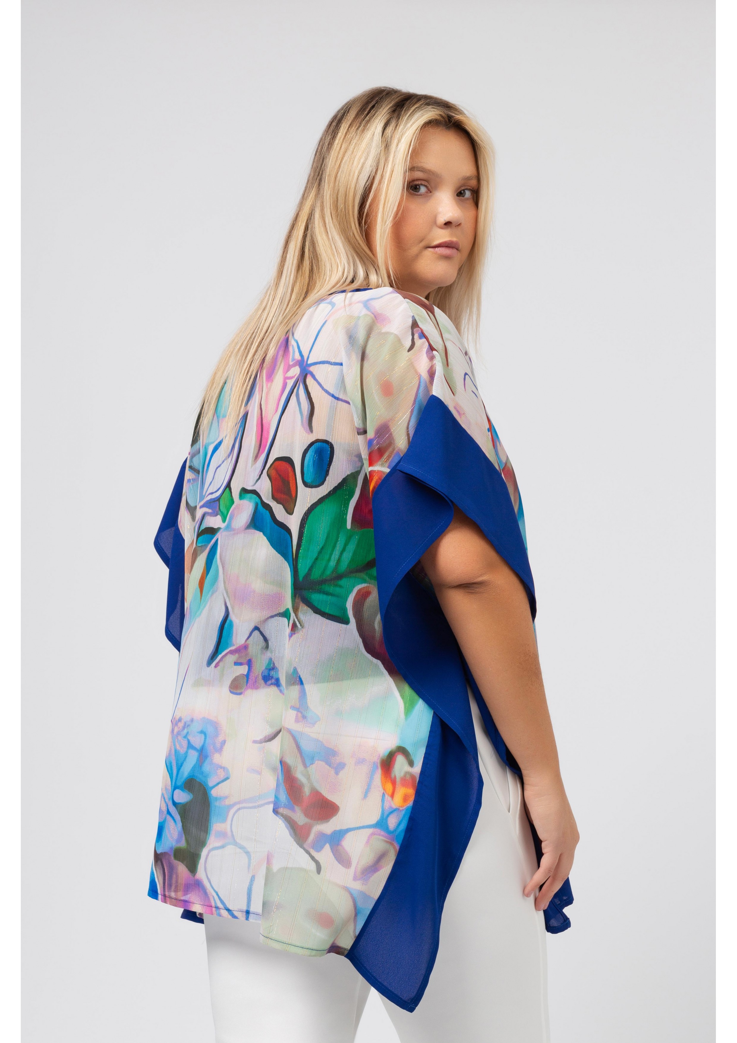 Poncho de tejido estampado, con top interior, escote en pico, laterales abiertos. Colección: Primavera Verano Disponible en Tallas Grandes Producto de diseño y fabricación propia. Somos una marca de confección de prendas con más de 50 años de experiencia. Modelo: Altura 1.70m y está vistiendo la talla 2XL. Composición: Estampado: 98%Poliéster 2%Elastano / Liso interior: 100%Poliéster / Forro: 94%Poliéster 6%Elastano