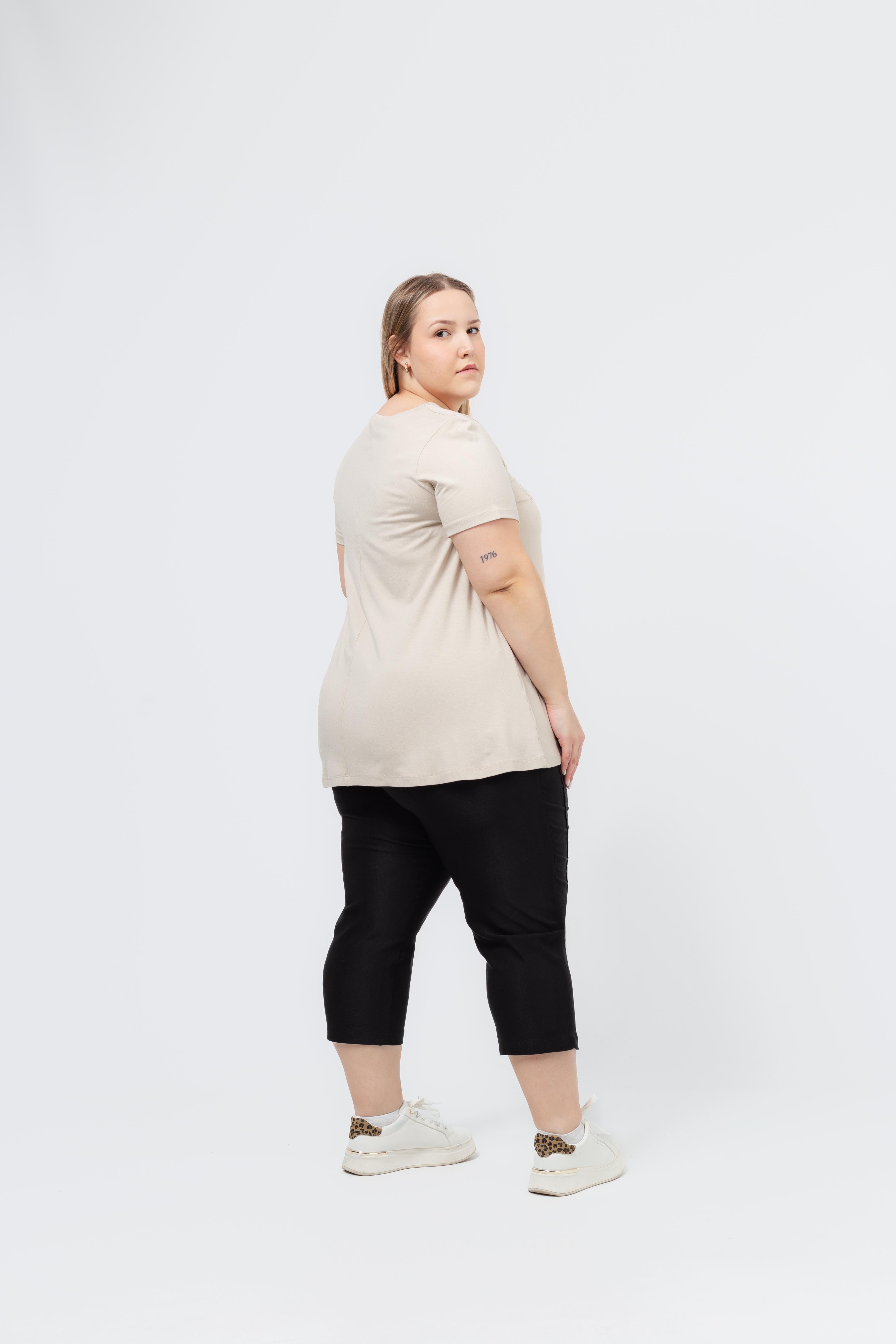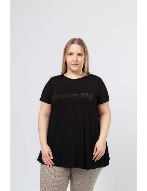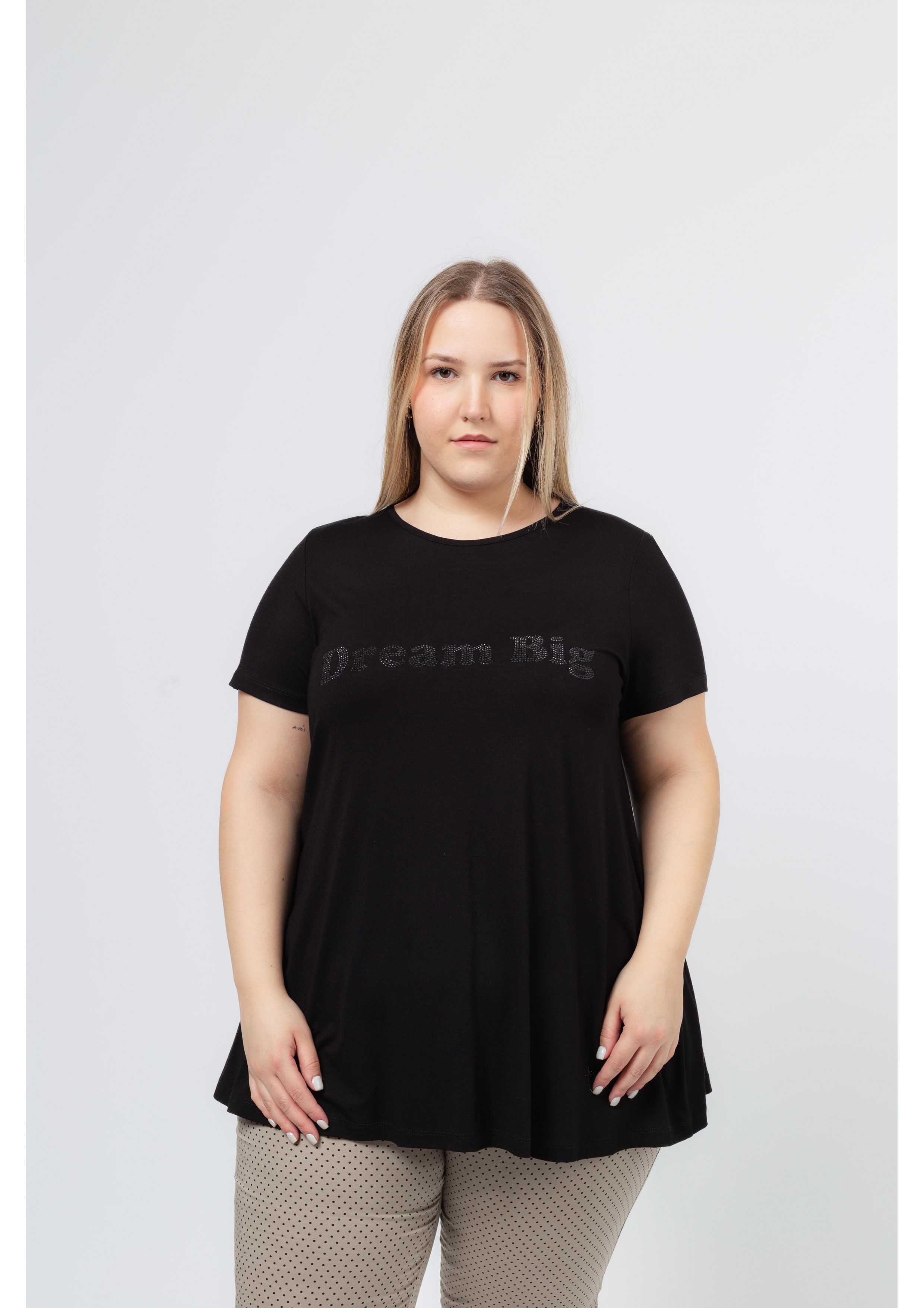Túnica de punto liso, manga larga cuello redondo. estampado "Dream Big", modelo evasé | Colección: Primavera Verano | Modelo: Altura 1.65m y lleva la talla 46.