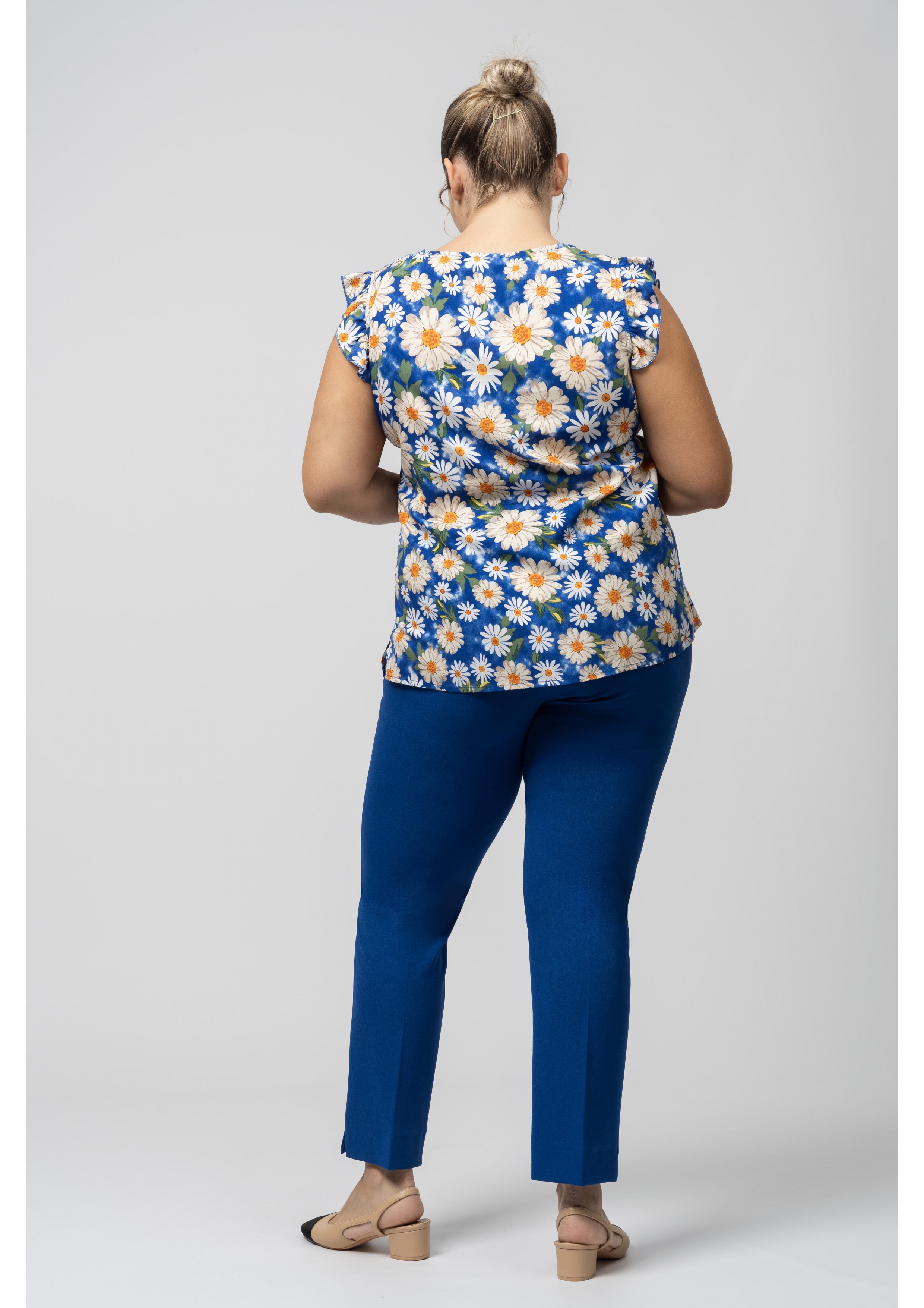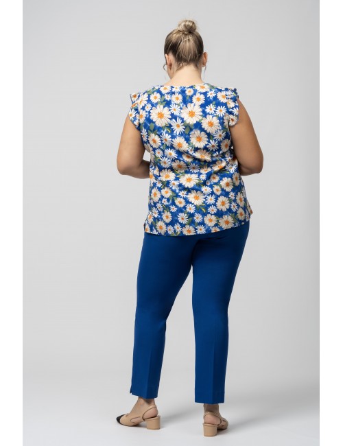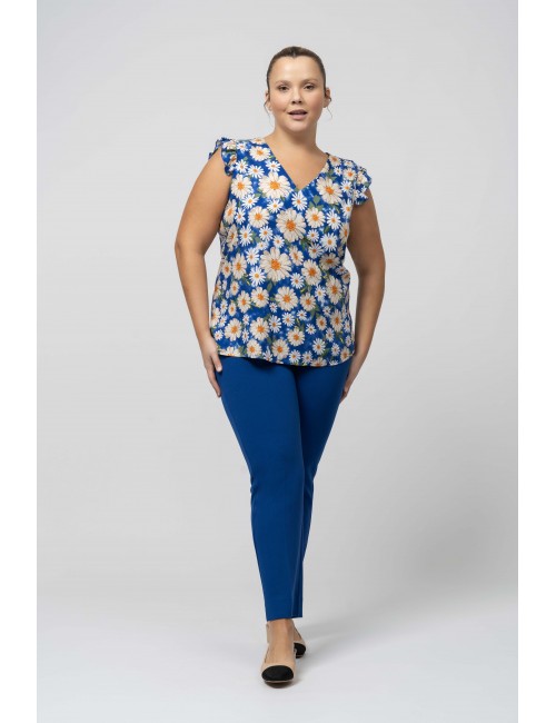 Pantalón de punto liso con aberturas en los laterales y cinturón con dos hebillas a medida y elástico en la espalda | Colección: Primavera Verano | Modelo 1: Altura 1,67m y está vistiendo la talla G en color azulón | Modelo 2: Altura 1,70m y está vistiendo la talla 2XL
