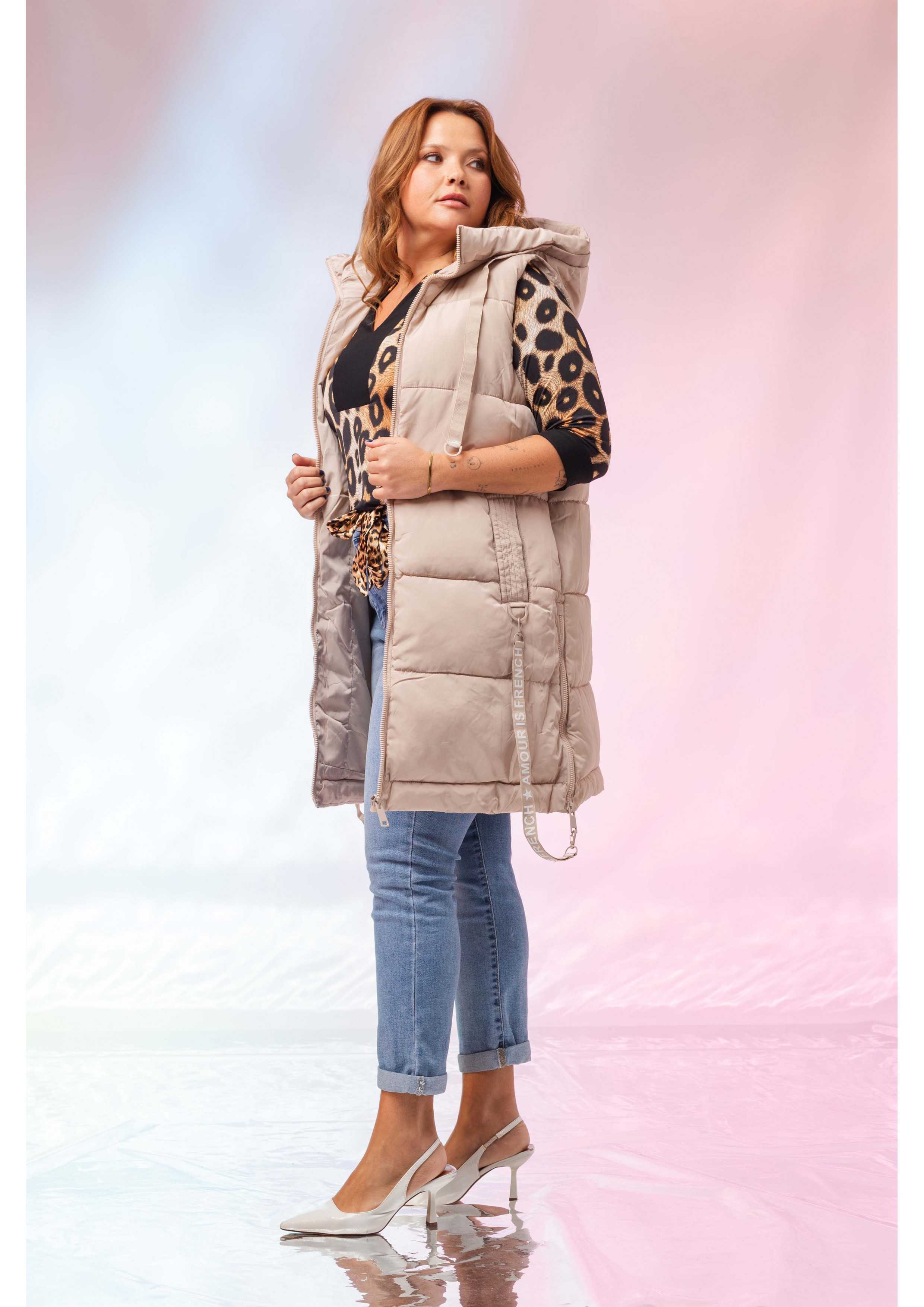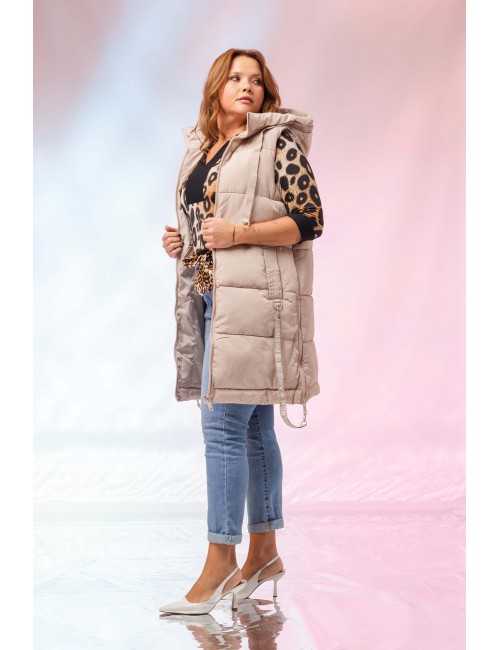 Chaleco de tela con bolsillos y capucha. Colección: Primavera Verano Disponible en Tallas Grandes Somos una marca de confección de ropa con más de 50 años de experiencia. Modelo: Altura 1.70m y está vistiendo la talla 44.