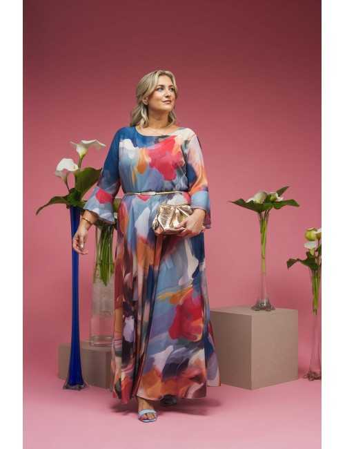 Vestido en tejido estampado, forrado. Manga 3/4 con volante. Cierre en la espalda, pinzas en el pecho. Falda evasé. Modelo ceremonia. Colección: Otoño Invierno Disponible en Tallas Grandes Producto de diseño y fabricación propia. Somos una marca de confección de ropa con más de 50 años de experiencia Modelo: Altura 1.70m y está vistiendo la talla 2XL. Nota: El color del cinturón puede variar entre plateado y dorado. Composición: 100%Poliéster|94%Poliéster 6%Elastano |