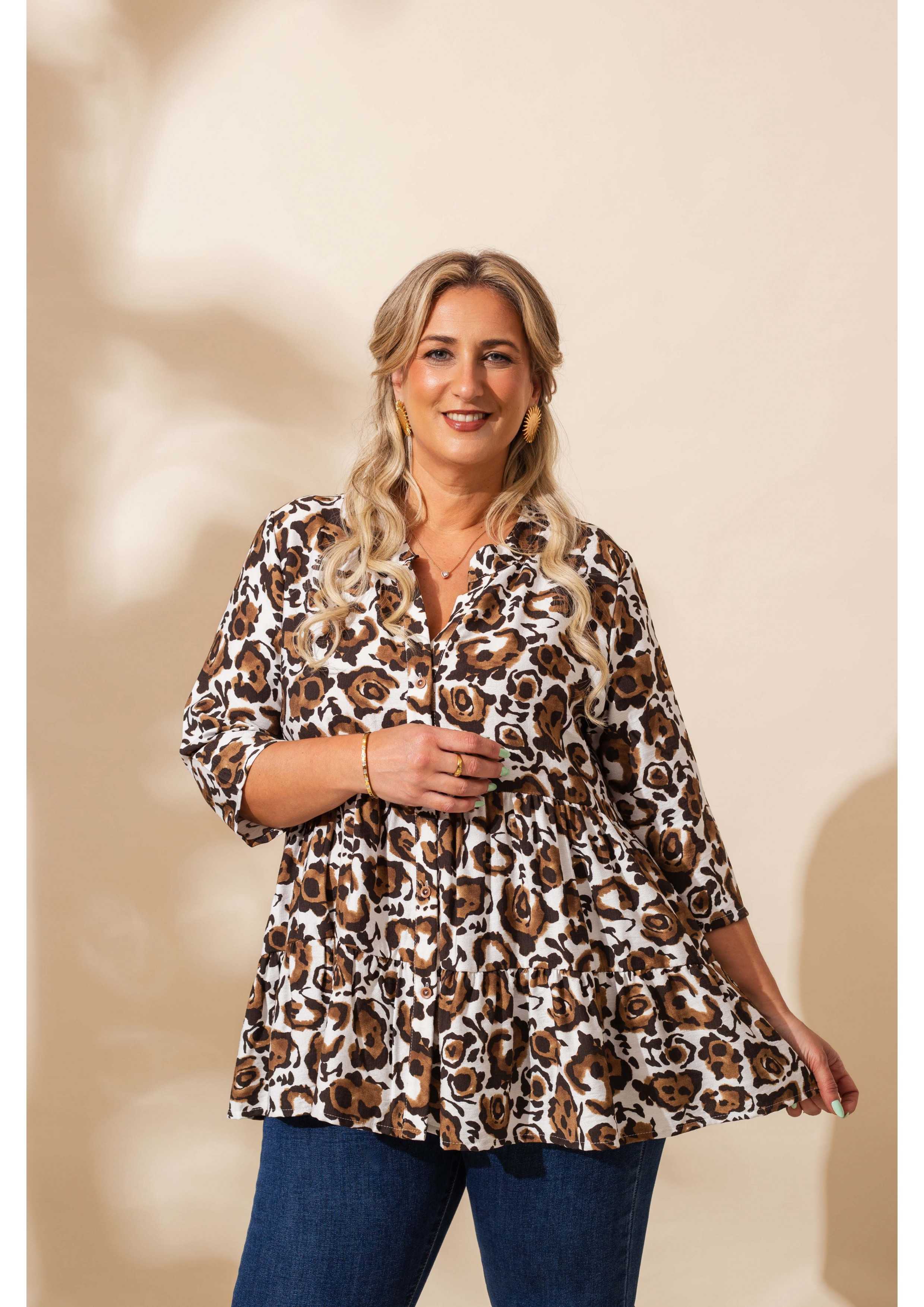 265005 - Blusa em tecido estampado Coleção Primavera Verão Tamanhos Grandes