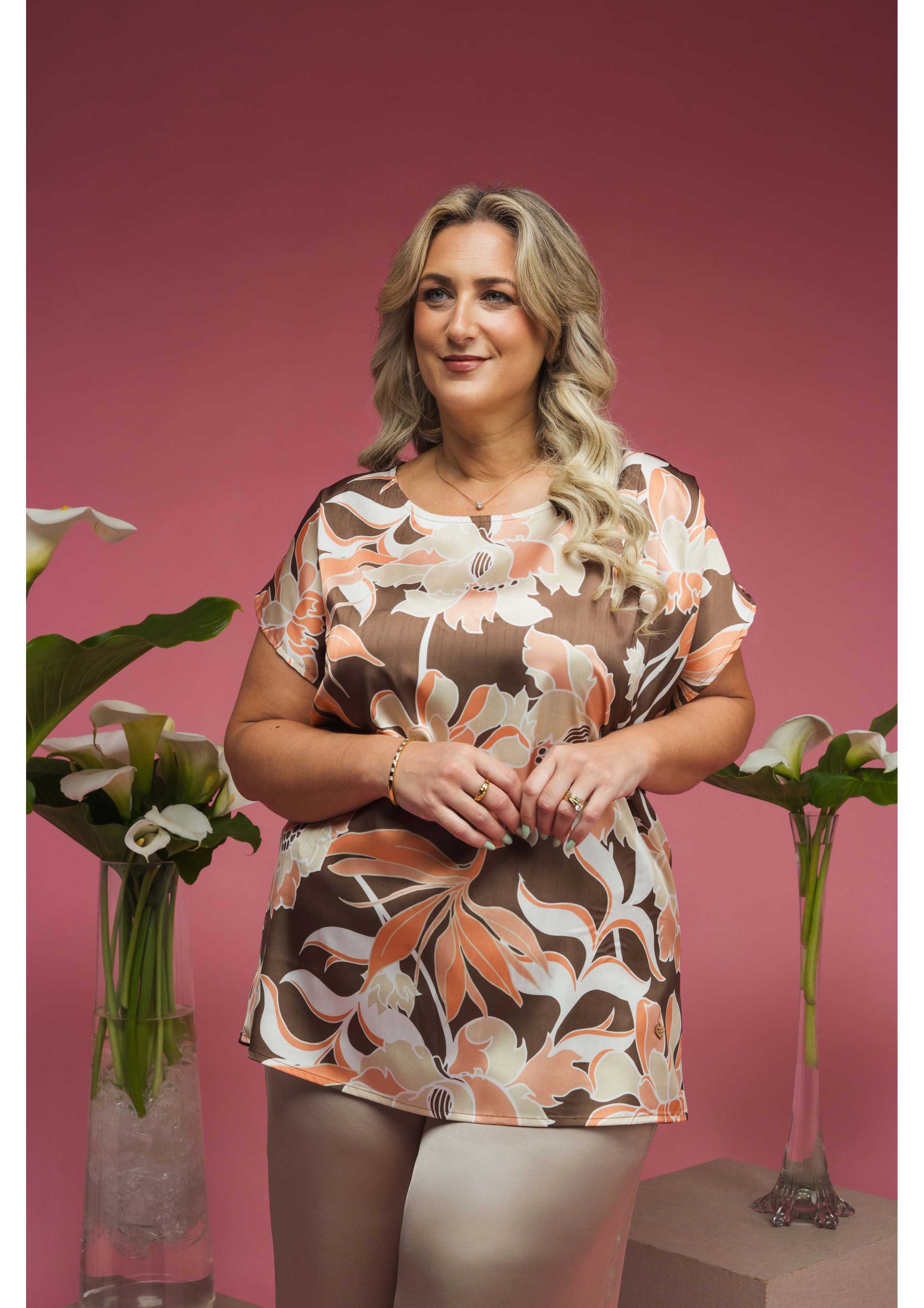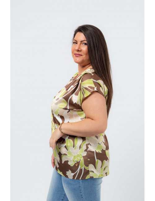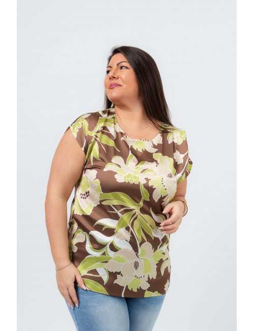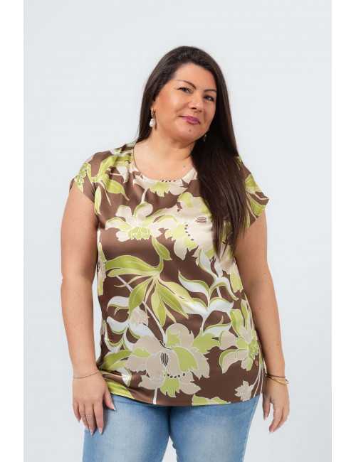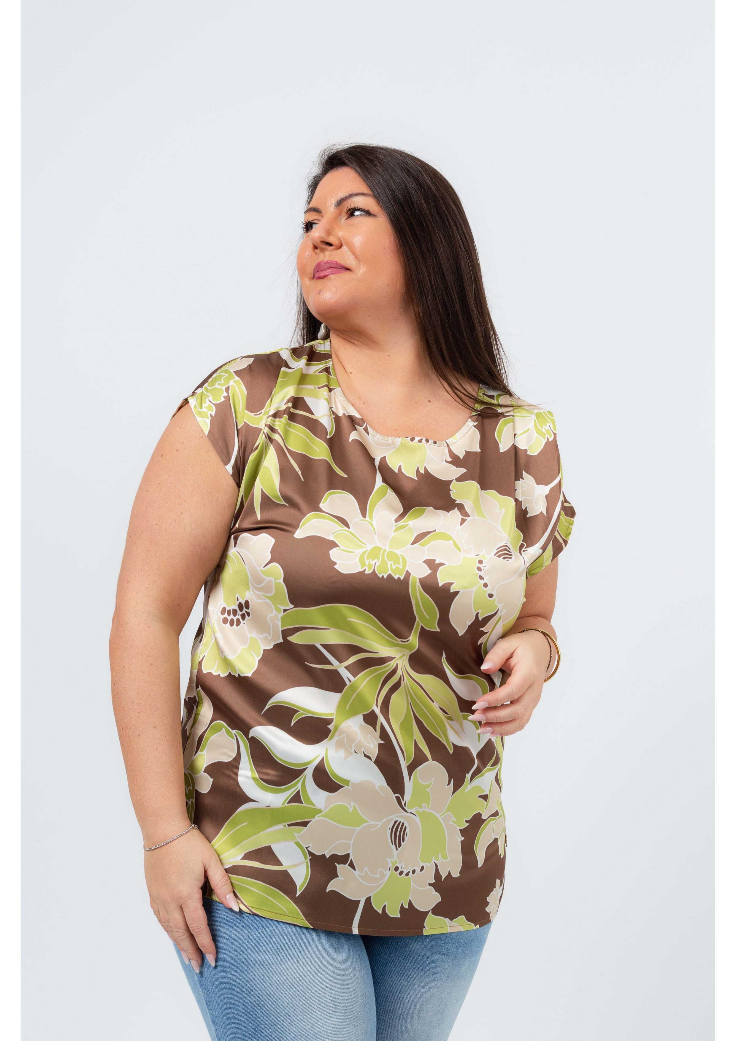 261044 - Túnica em tecido acetinado estampada Coleção Primavera Verão Tamanhos Grandes