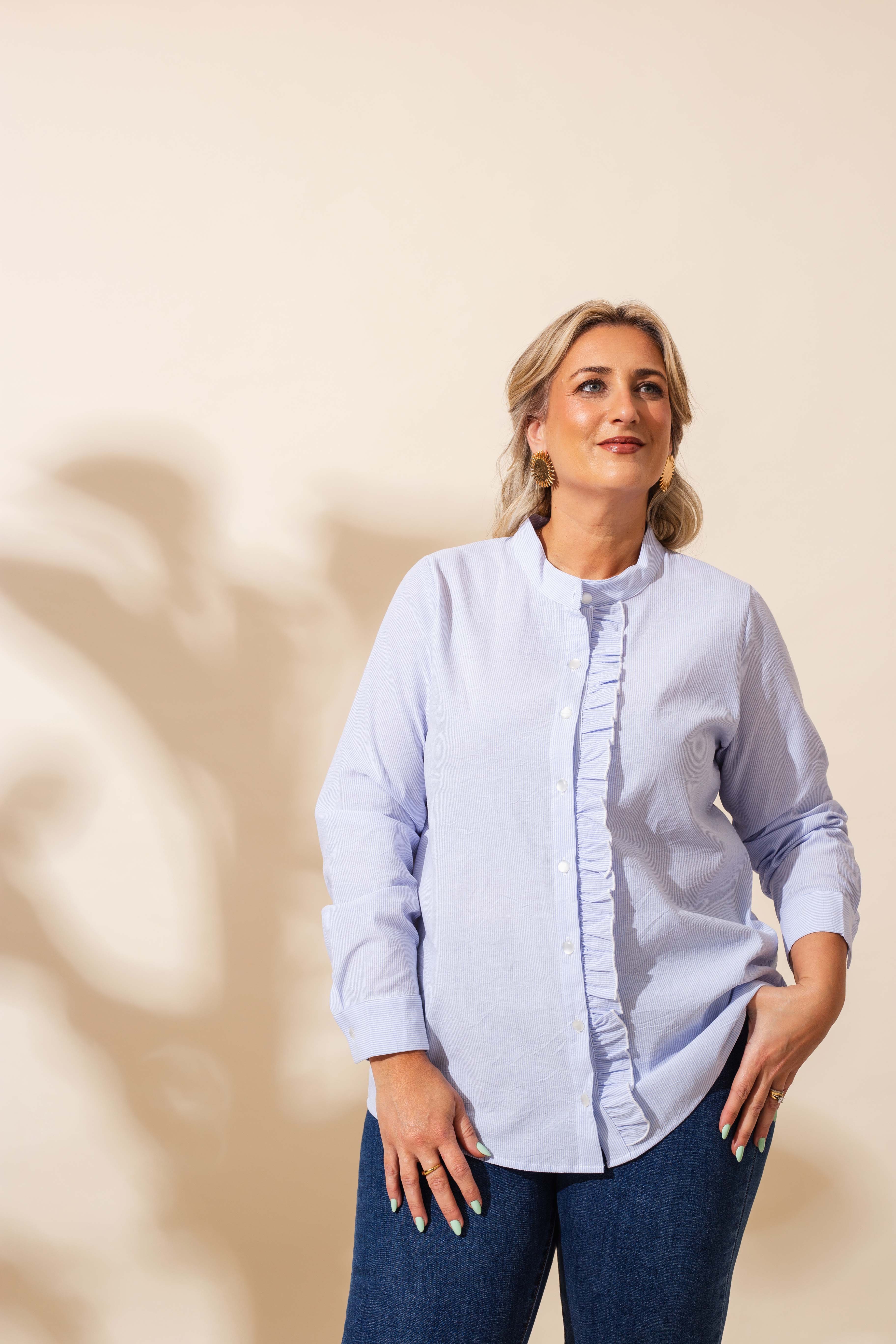 265002 - Blusa em tecido de risca fina Coleção Primavera Verão Tamanhos Grandes