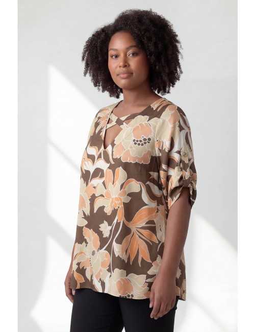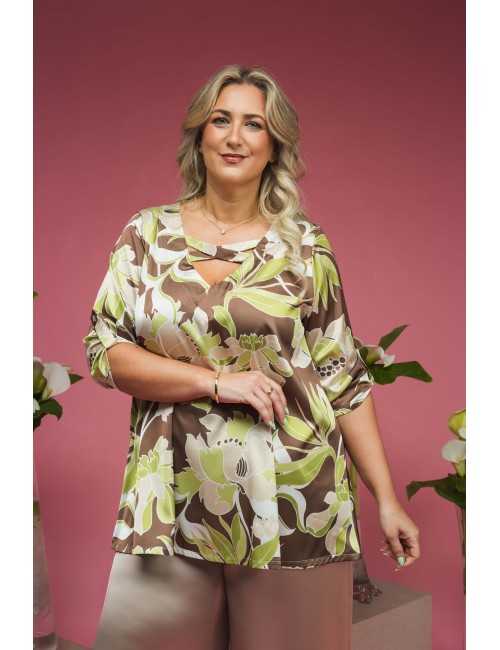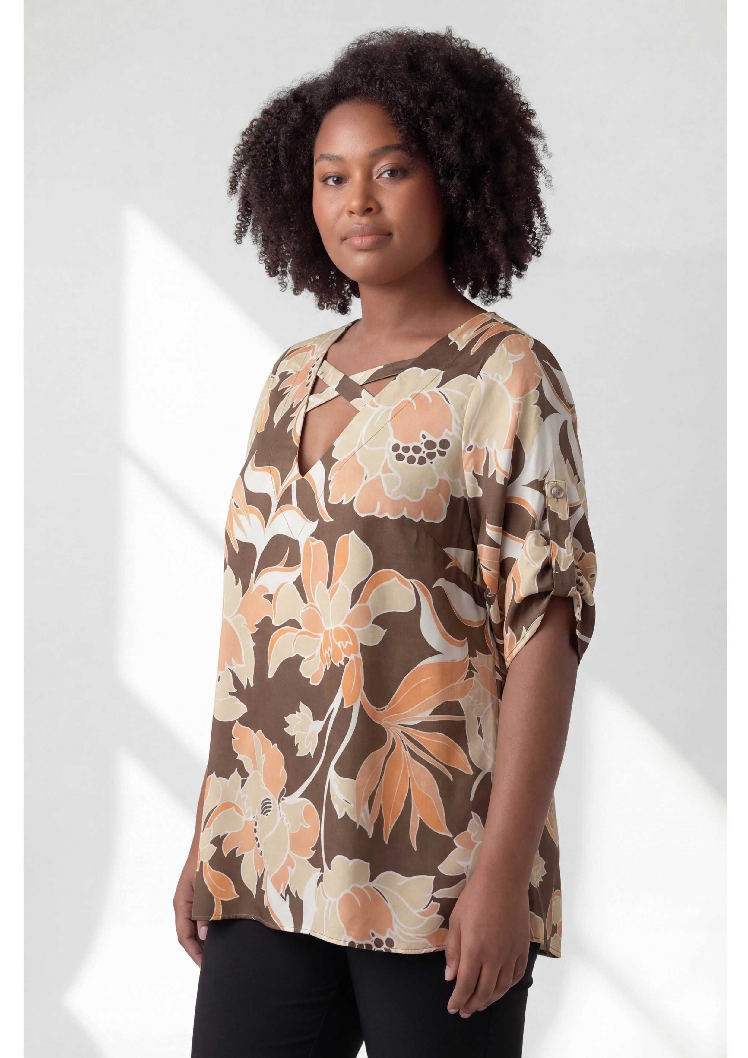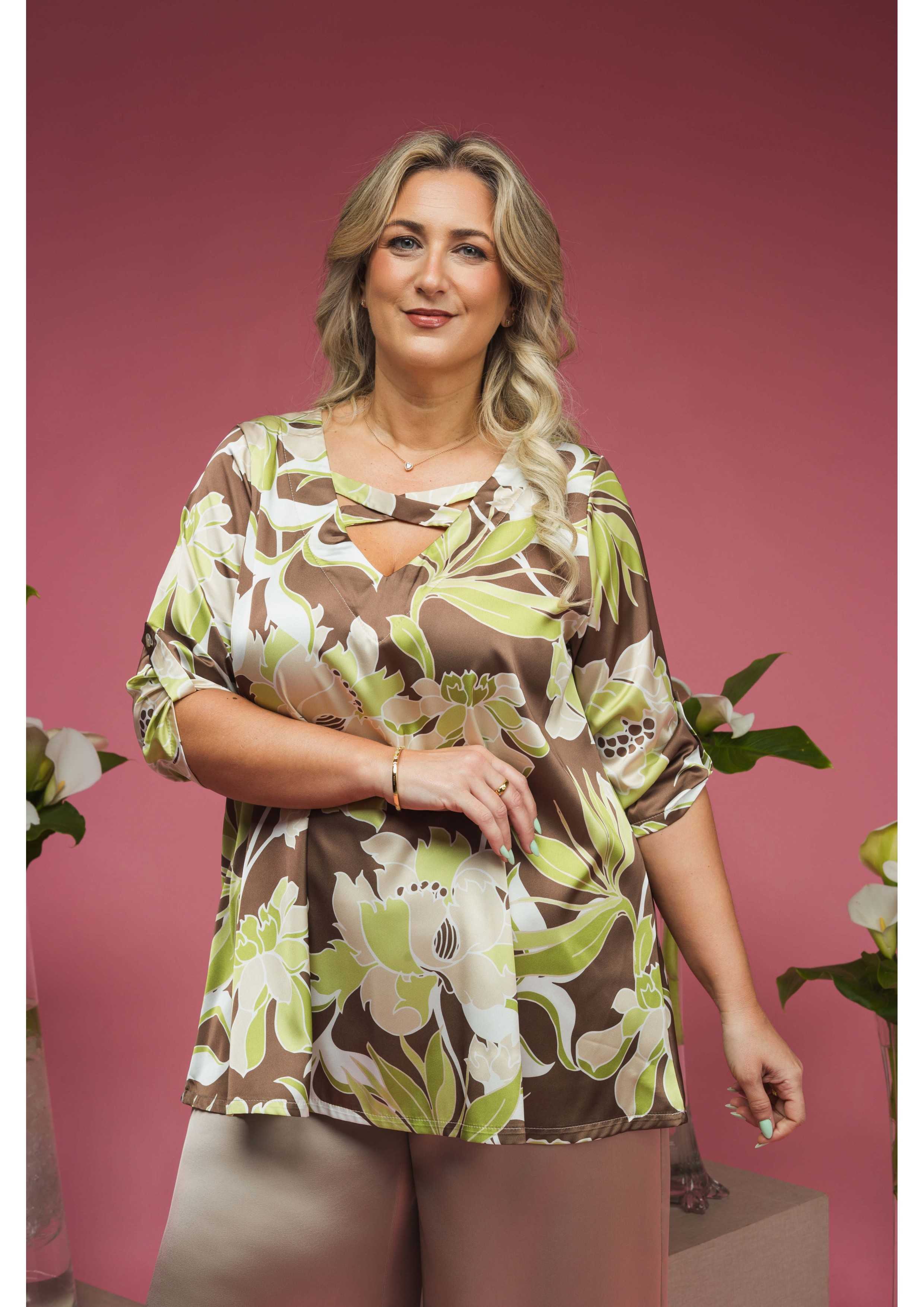 261047 - Túnica em tecido acetinado estampado Coleção Primavera Verão Tamanhos Grandes