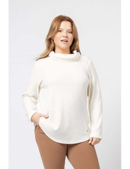 Jersey de punto liso, manga larga, cuello alto ancho caído. Base redondeada. Colección: Otoño Invierno Disponible en Tallas Grandes Producto de diseño y fabricación propia. Somos una marca de confección de ropa con más de 50 años de experiencia Modelo: Altura 1.70m y está usando la talla 2XL. Composición: 82%Poliéster 13%Nylon 5%Elastano