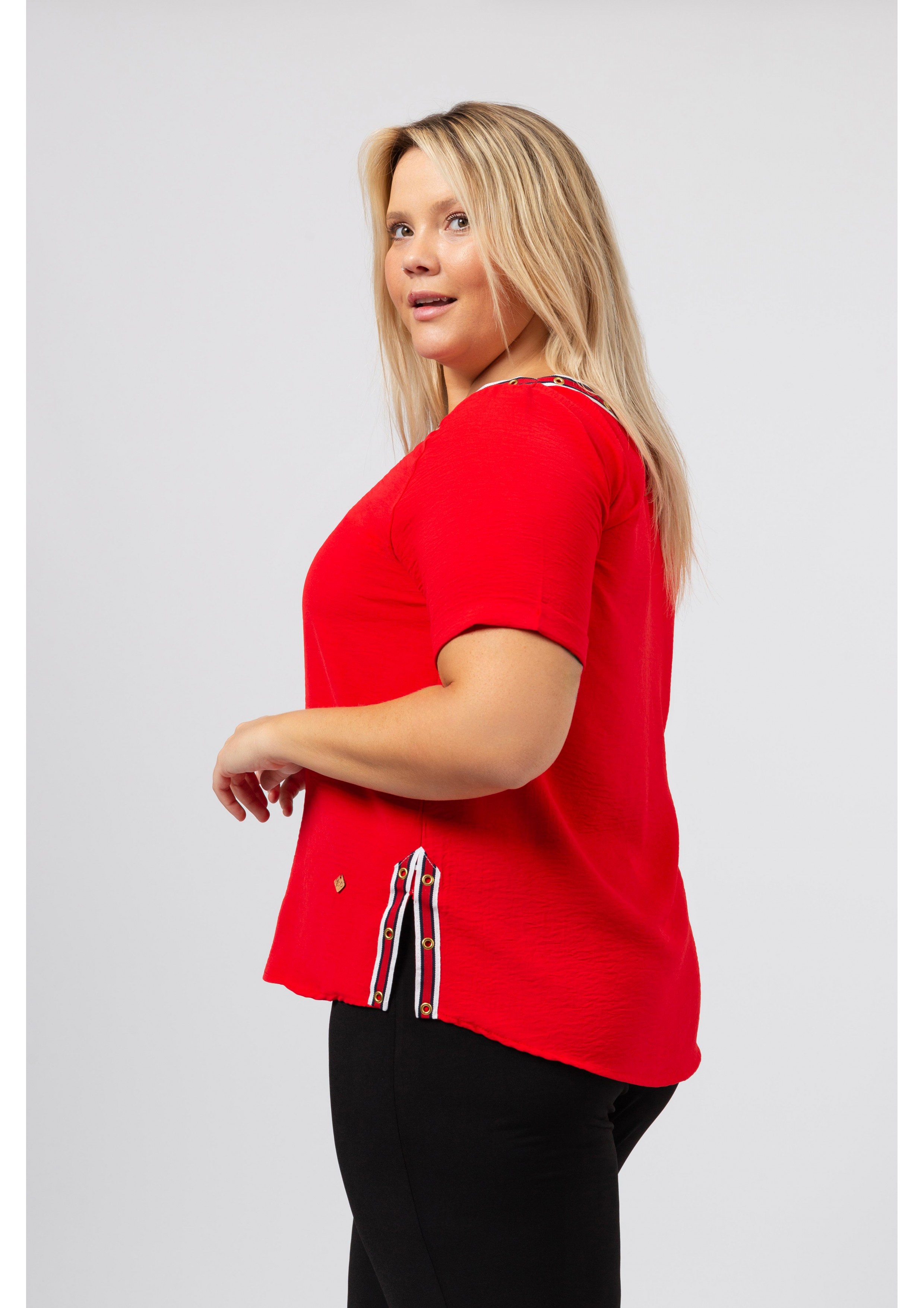 Túnica de tejido liso, escote en pico, cinta de raso con ojal en el escote y aberturas. Manga murciélago doblada. Aberturas laterales. Colección: Primavera Verano Disponible en Tallas Grandes Producto de diseño y fabricación propia. Somos una marca de confección de ropa con más de 50 años de experiencia Modelo: Altura 1.70m y está vistiendo la talla 2XL. Composición: 100% Poliéster