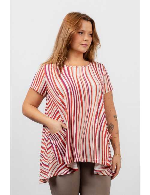Túnica de punto estampada, manga corta, escote redondo, bolsillos de parche en los laterales. Modelo evasé. Colección: Primavera Verano Disponible en Tallas Grandes Producto de diseño y fabricación propia. Somos una marca de confección de ropa con más de 50 años de experiencia Modelo: Altura 1.70m y está vistiendo la talla 2XL. Composición: 96%Poliéster 4%Elastano