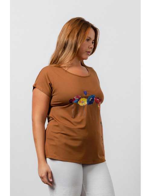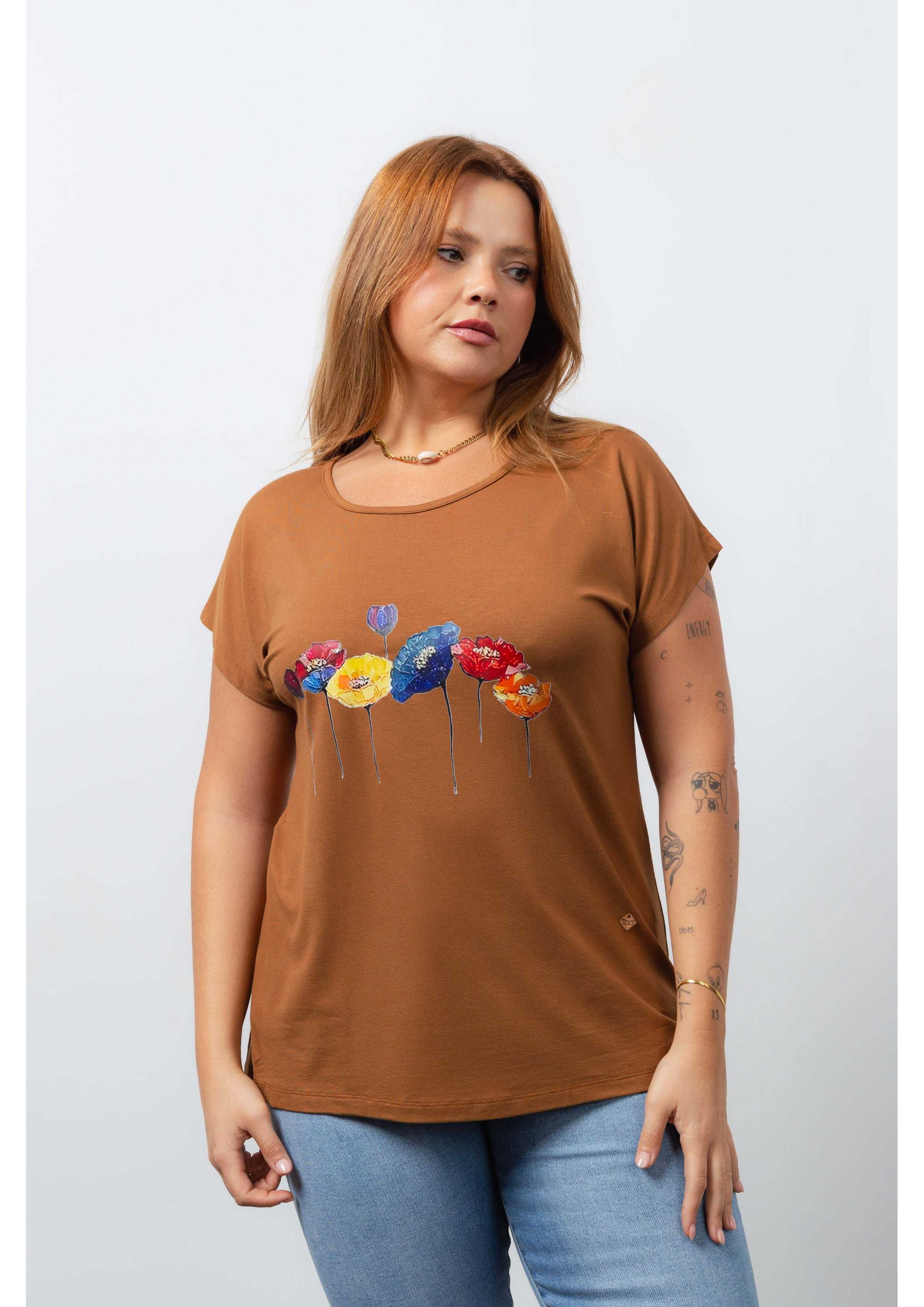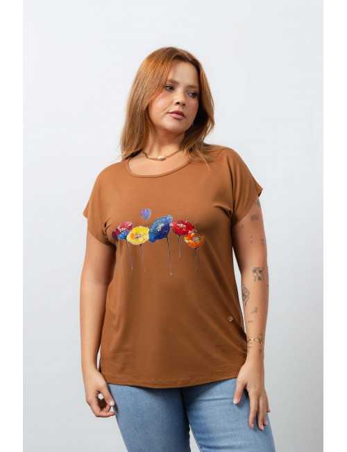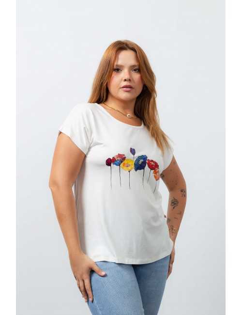 Túnica de malla lisa, estampada en la parte frontal con flores. Escote redondo. Colección: Primavera Verano Disponible en Tallas Grandes Producto de diseño y fabricación propia. Somos una marca de confección de ropa con más de 50 años de experiencia Modelo: Altura 1.70m y está usando la talla XL. Composición: 94%Viscosa 6%Elastano
