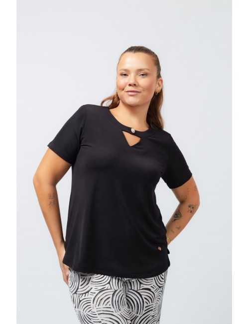 Túnica de tejido liso, escote redondo con efecto de cuello 1/2, en cruce con botón. Hombreras. Aberturas laterales. Colección: Primavera Verano Disponible en Tallas Grandes Producto de diseño y fabricación propia. Somos una marca de confección de ropa con más de 50 años de experiencia Modelo: Altura 1.70m y está vistiendo la talla XL. Composición: 94%Poliéster 6%Elastano