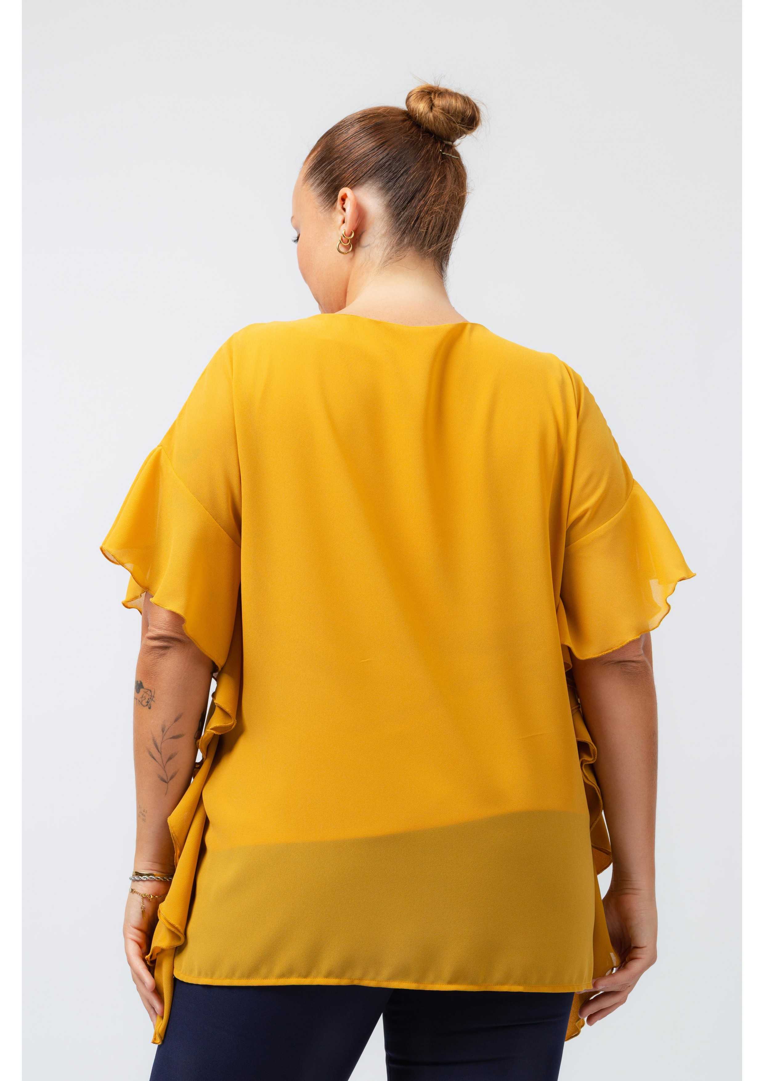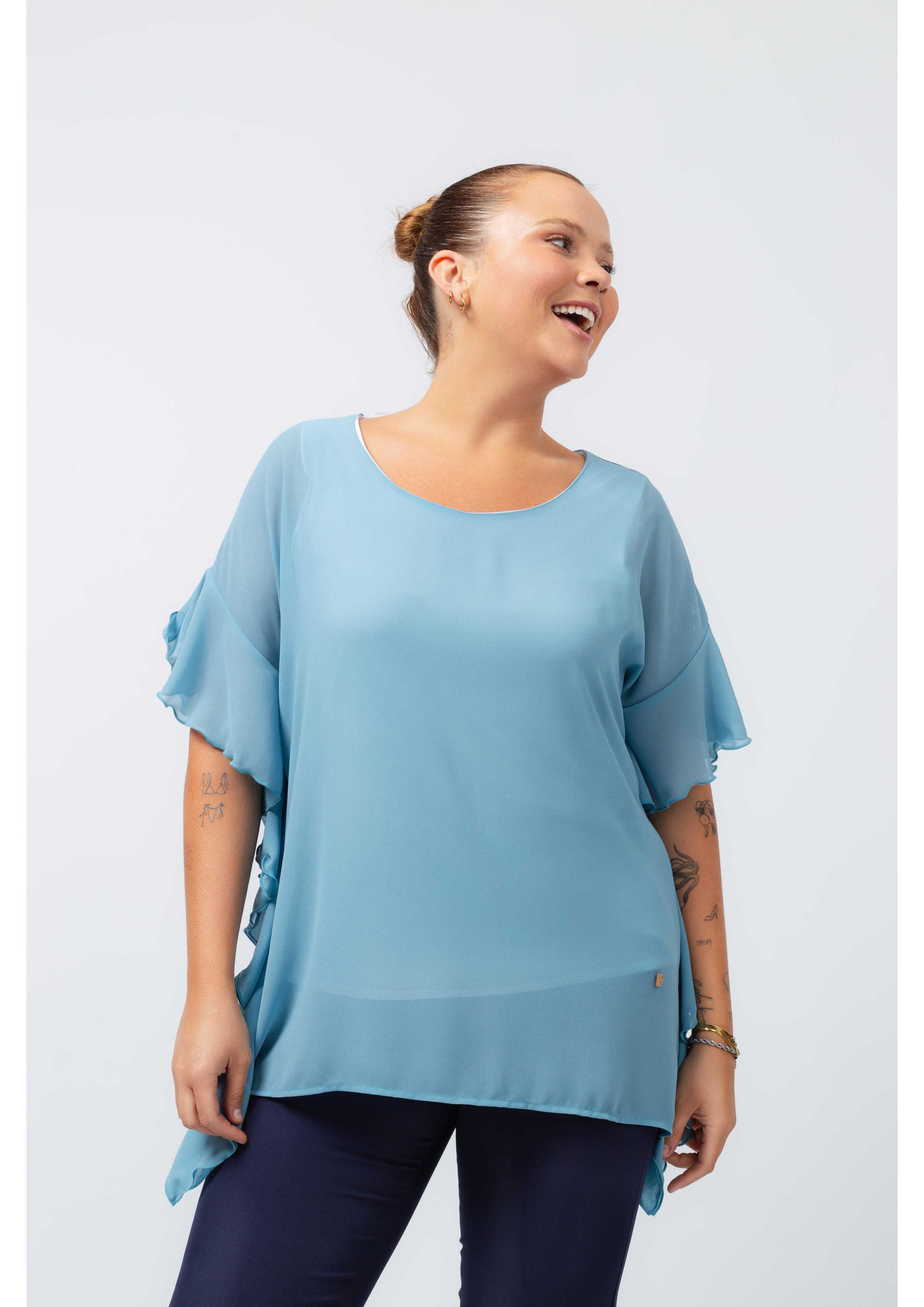 Túnica en tejido liso, fino, prenda forrada, volantes en los laterales con acabados en rollo, escote redondo. Colección: Primavera Verano Disponible en Tallas Grandes Producto de diseño y fabricación propia. Somos una marca de confección de ropa con más de 50 años de experiencia Modelo: Altura 1.70m y está usando la talla XL. Composición: 100%Poliéster|94%Poliéster 6%Elastano