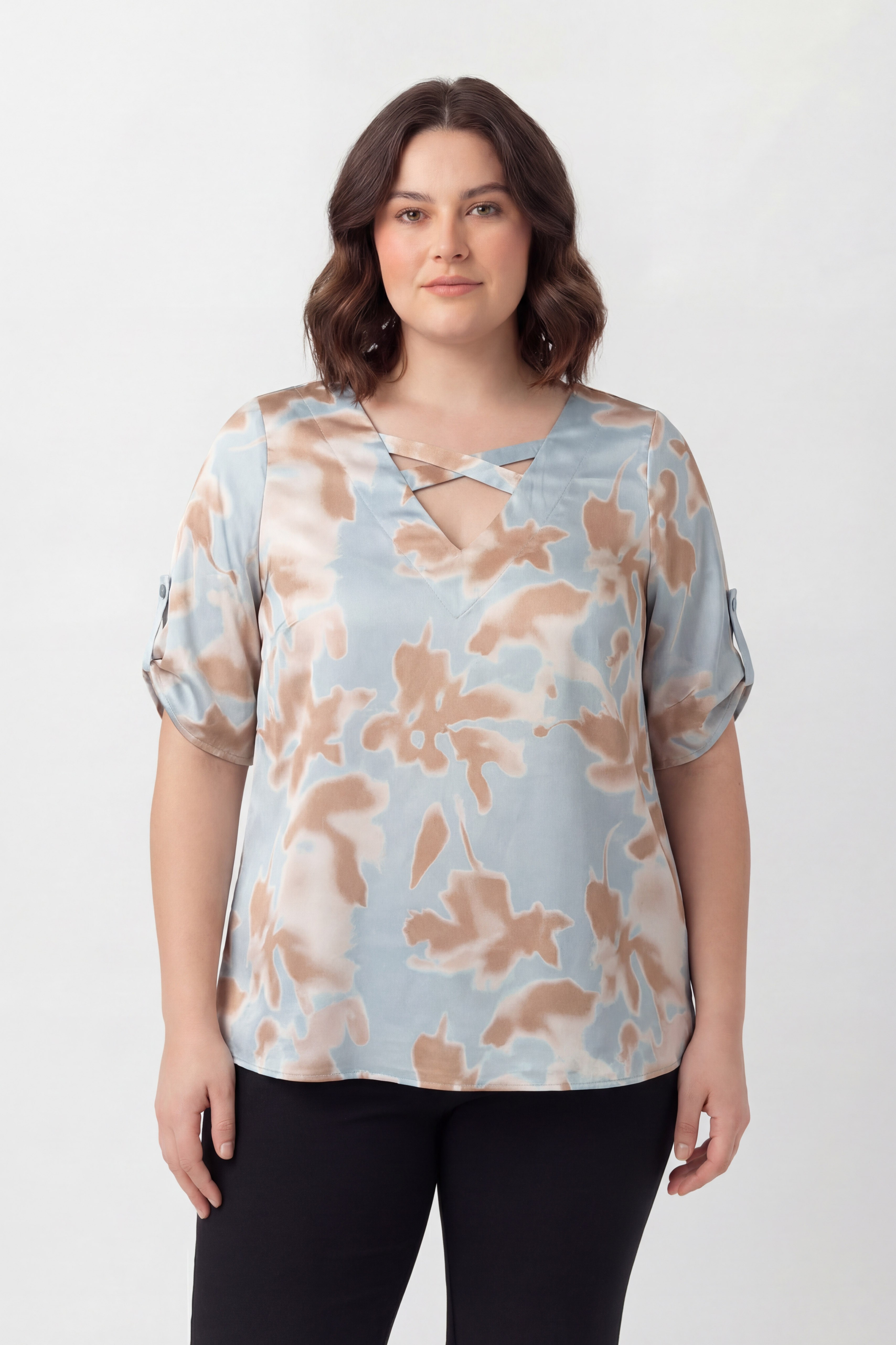 261046 - Túnica em tecido acetinado estampado Coleção Primavera Verão Tamanhos Grandes