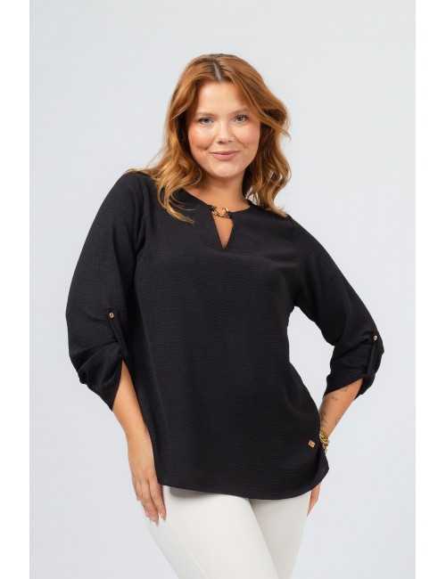 Túnica en tejido liso, manga larga con sujetadores. escote redondo con aplicación tipo herradura. Base redondeada. Colección: Otoño Invierno Disponible en Tallas Grandes Producto de diseño y fabricación propia. Somos una marca de confección de ropa con más de 50 años de experiencia Modelo: Altura 1.70m y está vistiendo la talla XL. Composición: 100%Poliéster