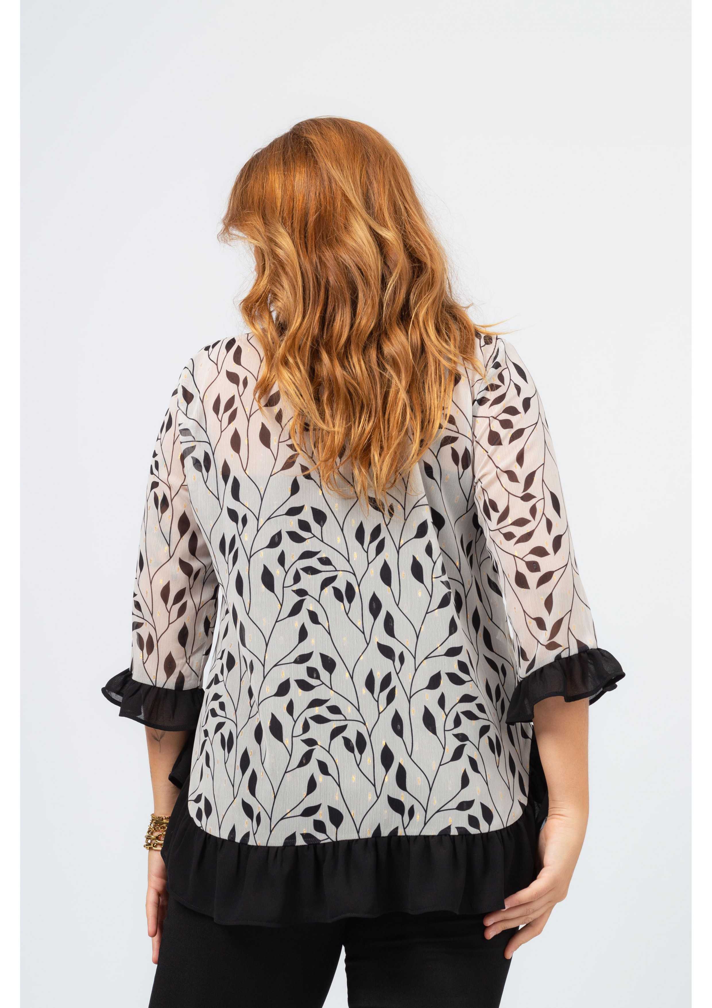 Túnica de tela estampada, manga 3/4. Escote redondo. Volante de tela lisa en la base y en las mangas. Lleva top interior. Colección: Otoño Invierno Disponible en Tallas Grandes Producto de diseño y fabricación propia. Somos una marca de confección de ropa con más de 50 años de experiencia Modelo: Altura 1.70m y está vistiendo la talla XL. Composición: 95%Poliéster 5%Metal| 94%Poliéster 6%Elastano| 100%Poliéster