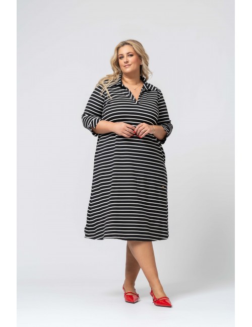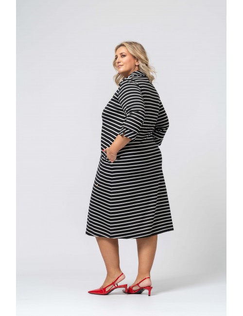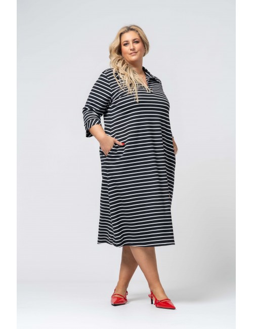 Vestido de punto rico con manga 3/4 y bolsillos. Colección: Primavera Verano Modelo: Altura 1.65m y está usando la talla 3XL en azul marino y negro. Modelo: Altura 1.70m y está usando la talla 2XL en rojo. 68%Viscosa 32%Elastano