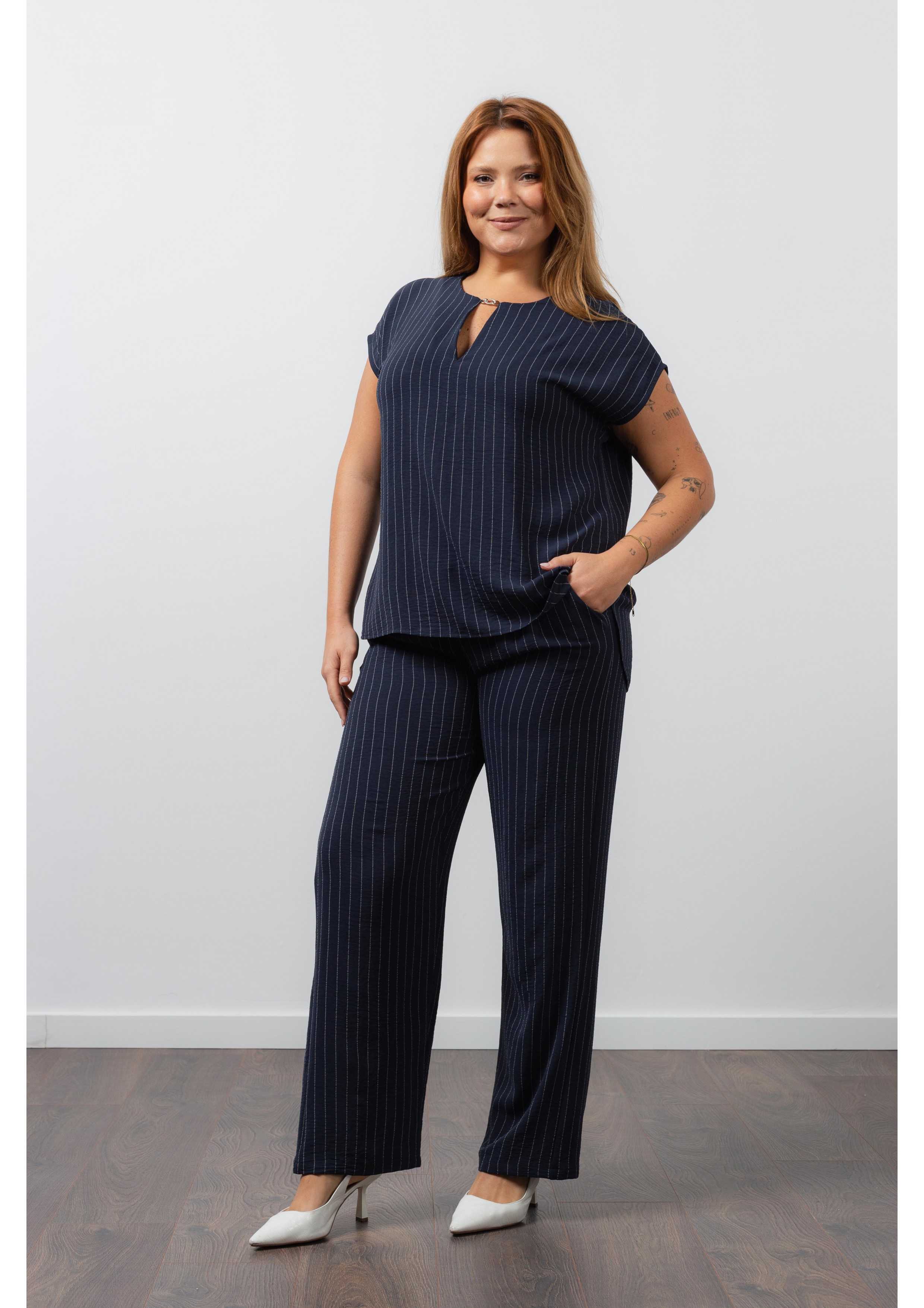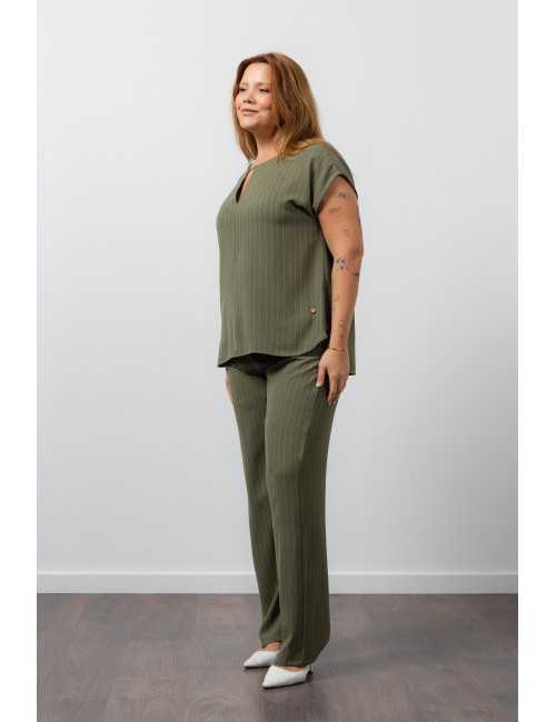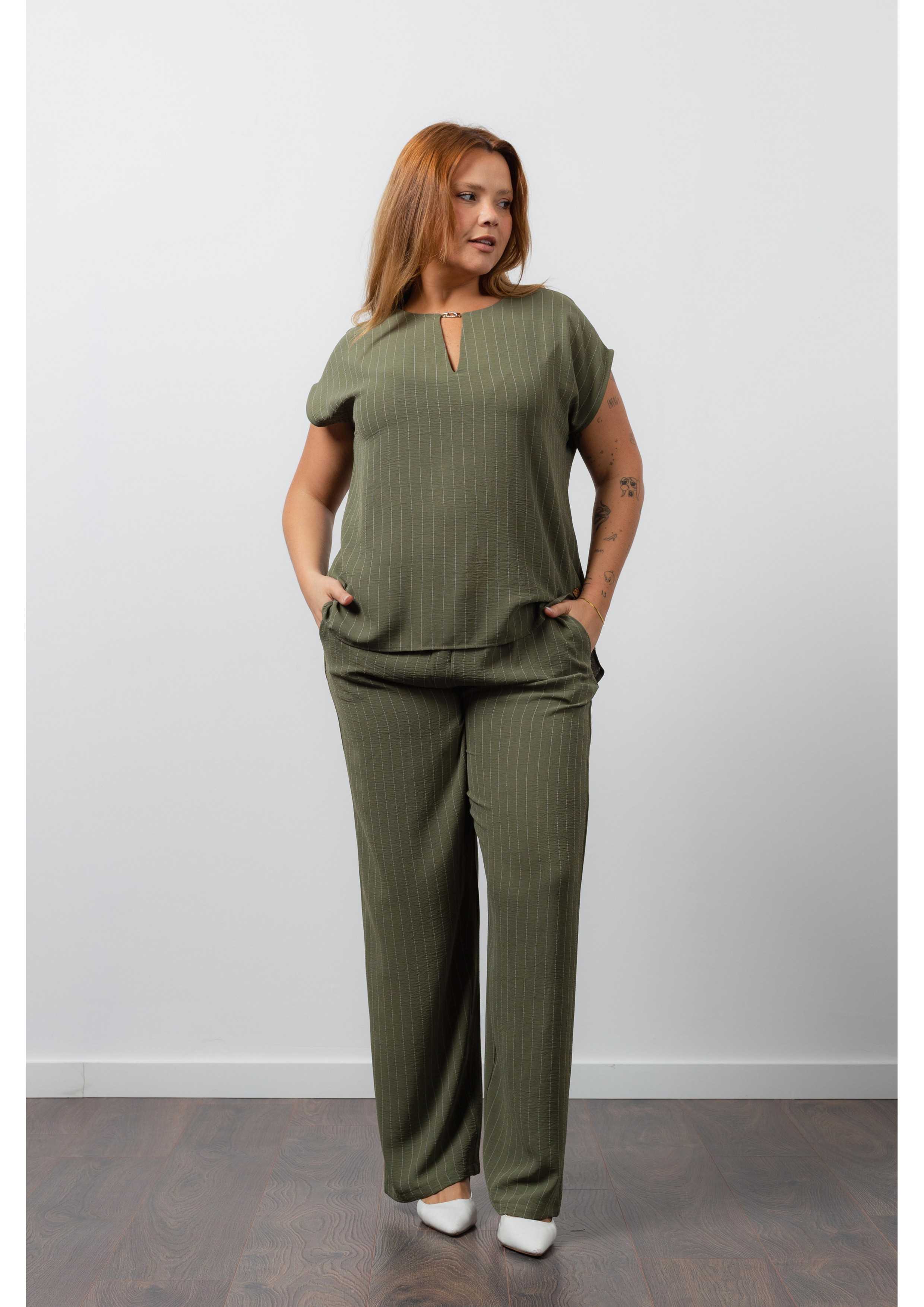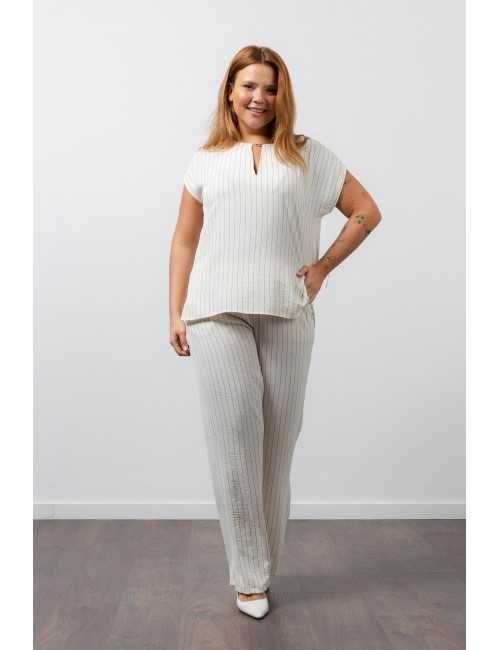 Conjunto en tejido liso de rayas verticales Colección Primavera Verano Tallas Grandes