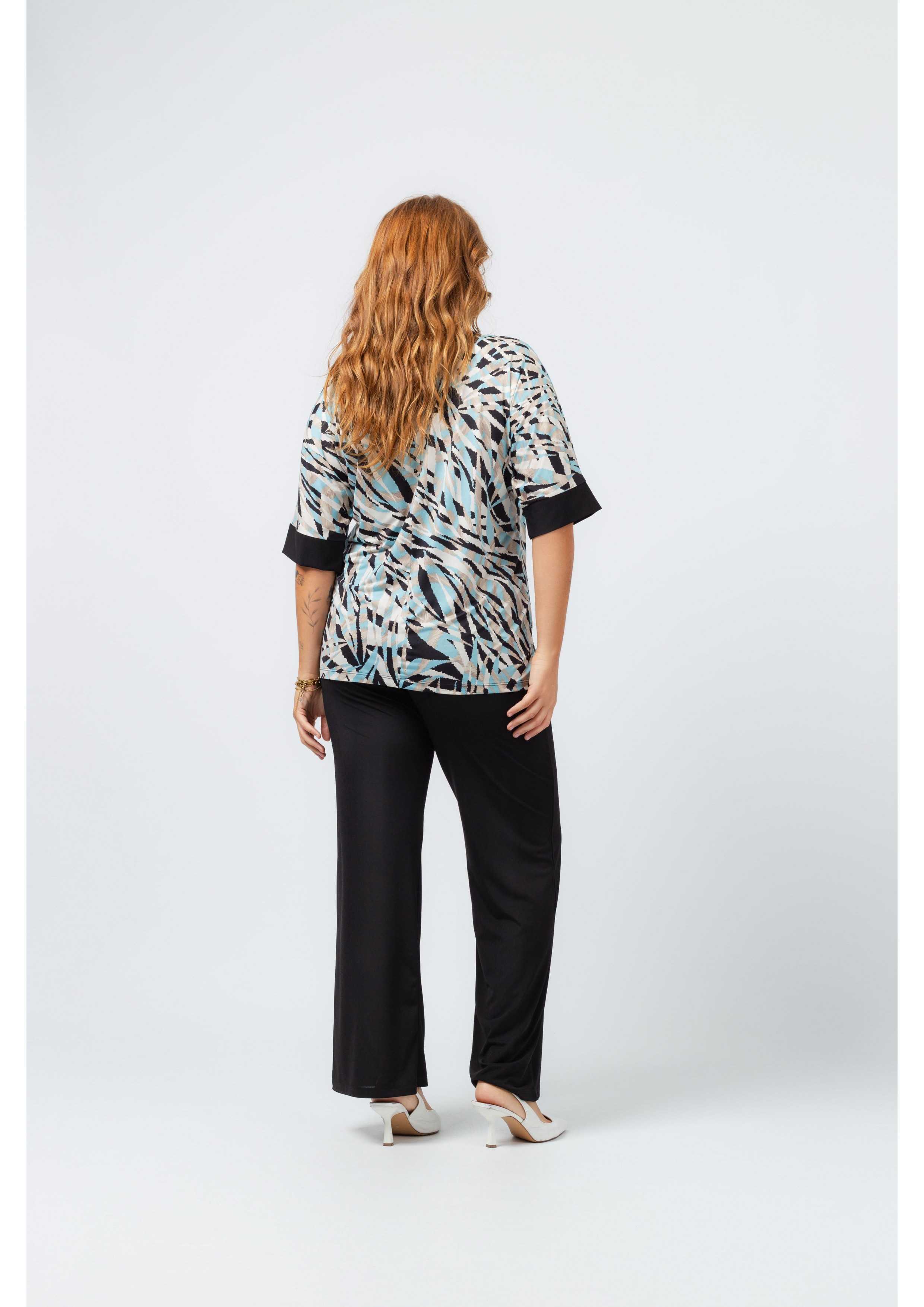 Conjunto de punto liso y estampado, camiseta estampada de manga murciélago, aberturas laterales, escote en pico y puños de punto liso, pantalón liso con cinturón alto elástico, modelo amplio. Colección: Primavera Verano Disponible en Tallas Grandes Producto de diseño y fabricación propia. Somos una marca de confección de ropa con más de 50 años de experiencia Modelo: Altura 1.70m y está usando la talla XL. Composición: 94% Poliéster 6% Elastano