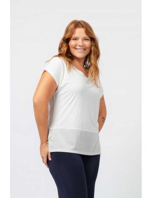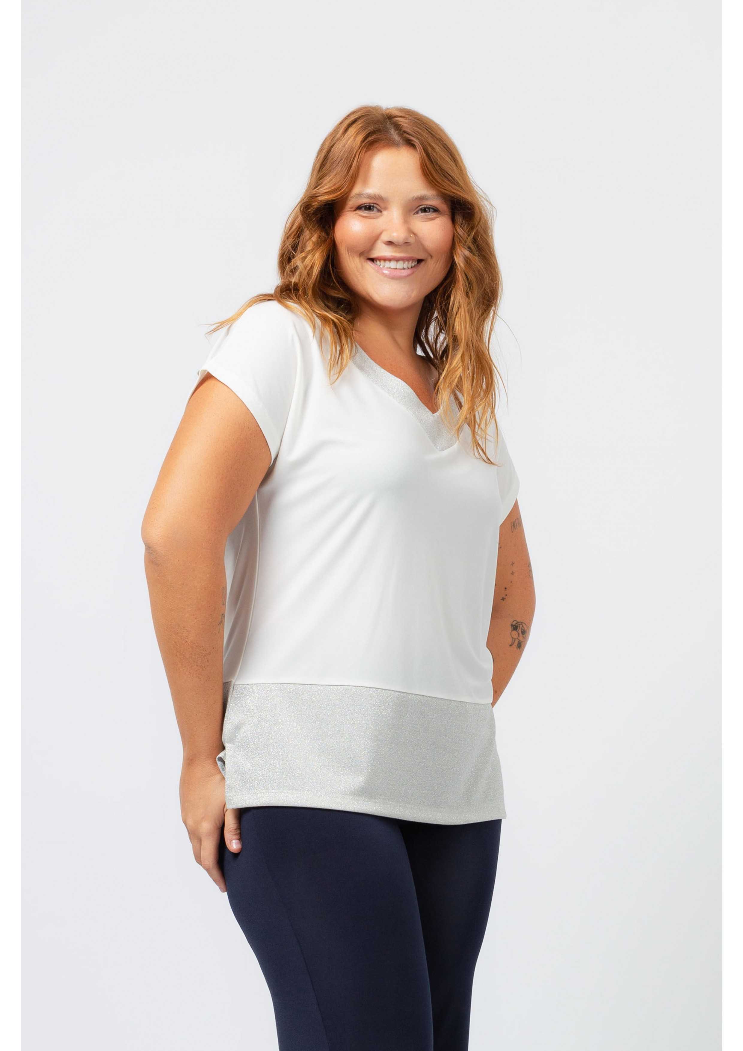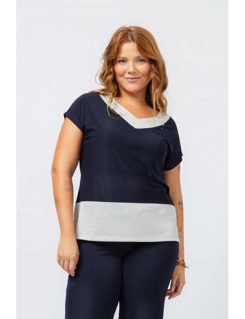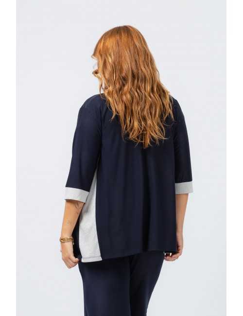 Conjunto de punto liso, con detalles en punto lurex. Camiseta con escote en pico y detalle en la base, aberturas laterales. Chaqueta de manga 3/4 con puños, detalle lateral. Colección: Primavera Verano Disponible en Tallas Grandes Producto de diseño y fabricación propia. Somos una marca de confección de ropa con más de 50 años de experiencia Modelo: Altura 1.70m y está usando la talla XL. Composición: 94%Poliéster 6%Elastano|46%Viscosa 30%Nylon 12%Poliéster 12%Elastano