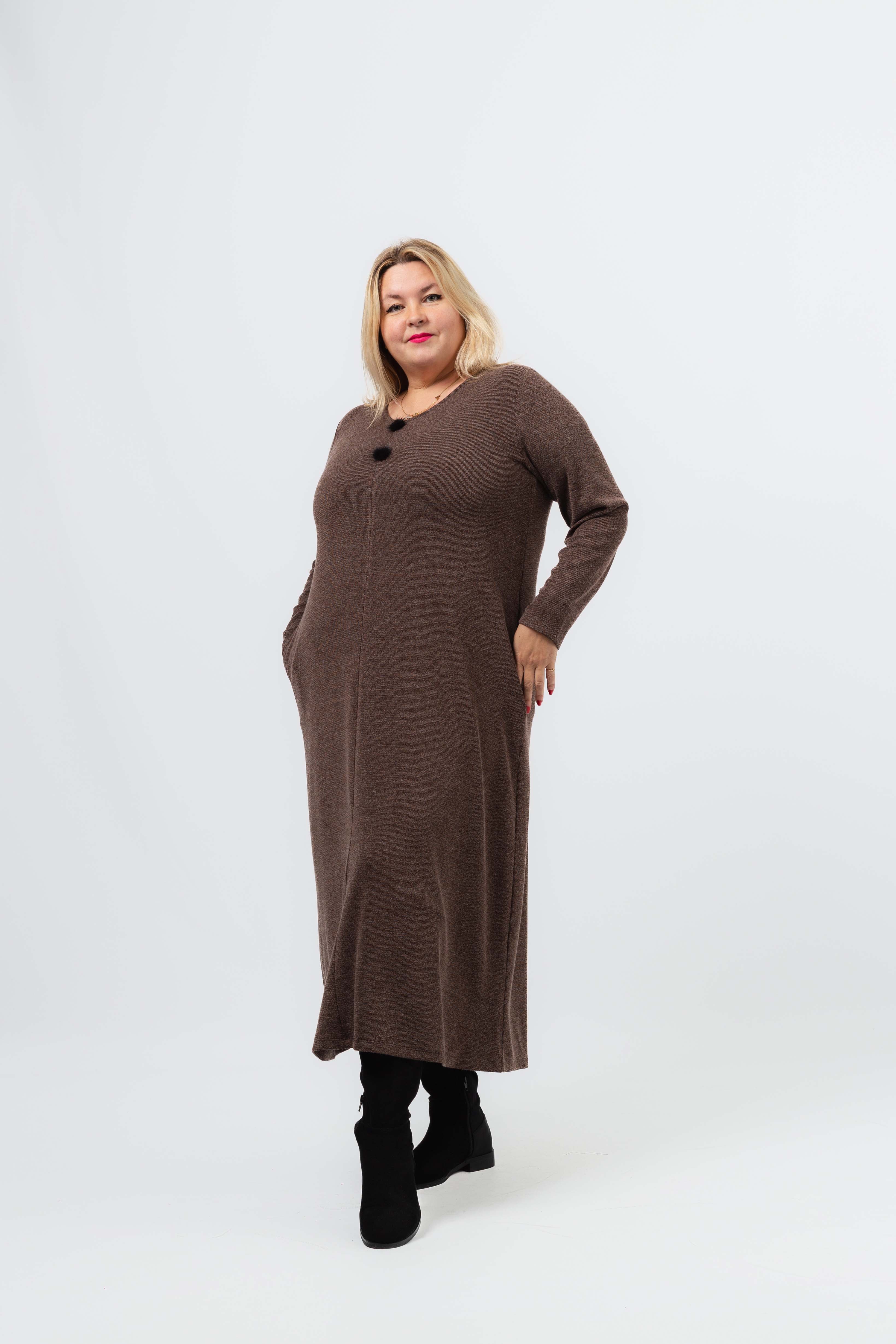 256080 - Vestido em malha lisa Coleção Outono Inverno Tamanhos Grandes