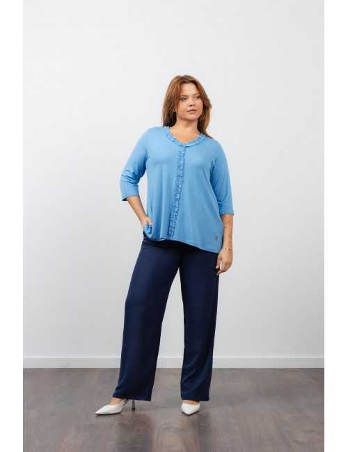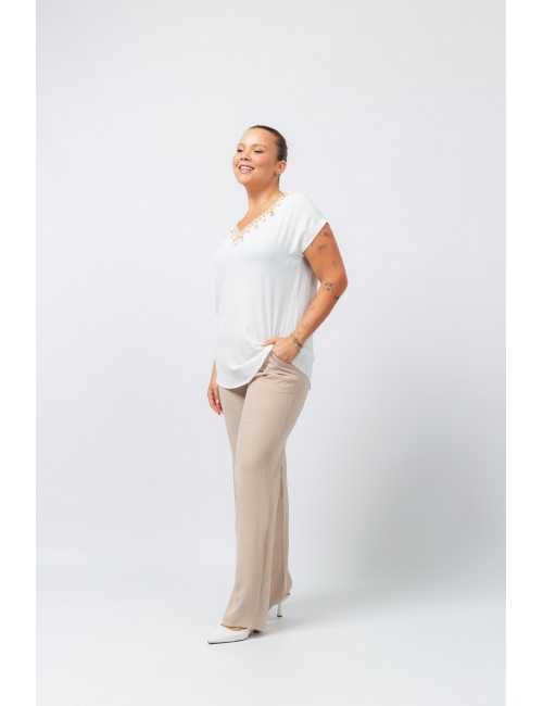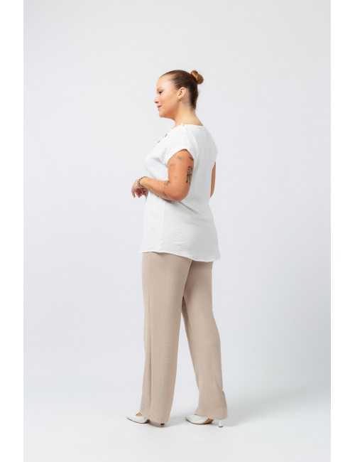 Pantalon en tissu uni, poches latérales et élastique à la taille. Collection : Printemps Été Disponible en Grandes Tailles Produit conçu et fabriqué par nos soins. Nous sommes une marque de confection de vêtements avec plus de 50 ans d'expérience Modèle 1 : Taille 1,80 m et porte la taille G Modèle 2 : Taille 1,70 m et porte la taille XL Composition : 100 % Polyester