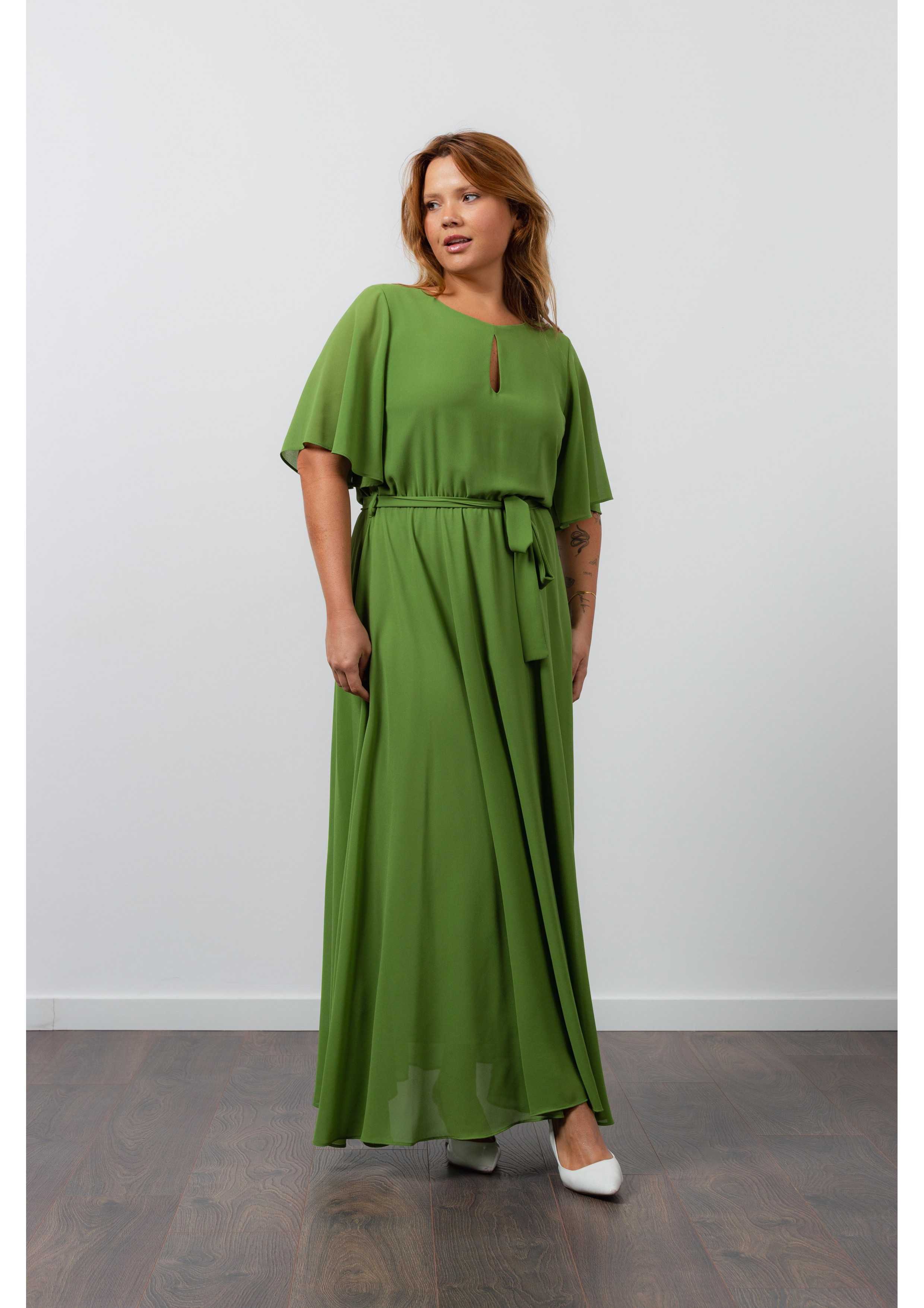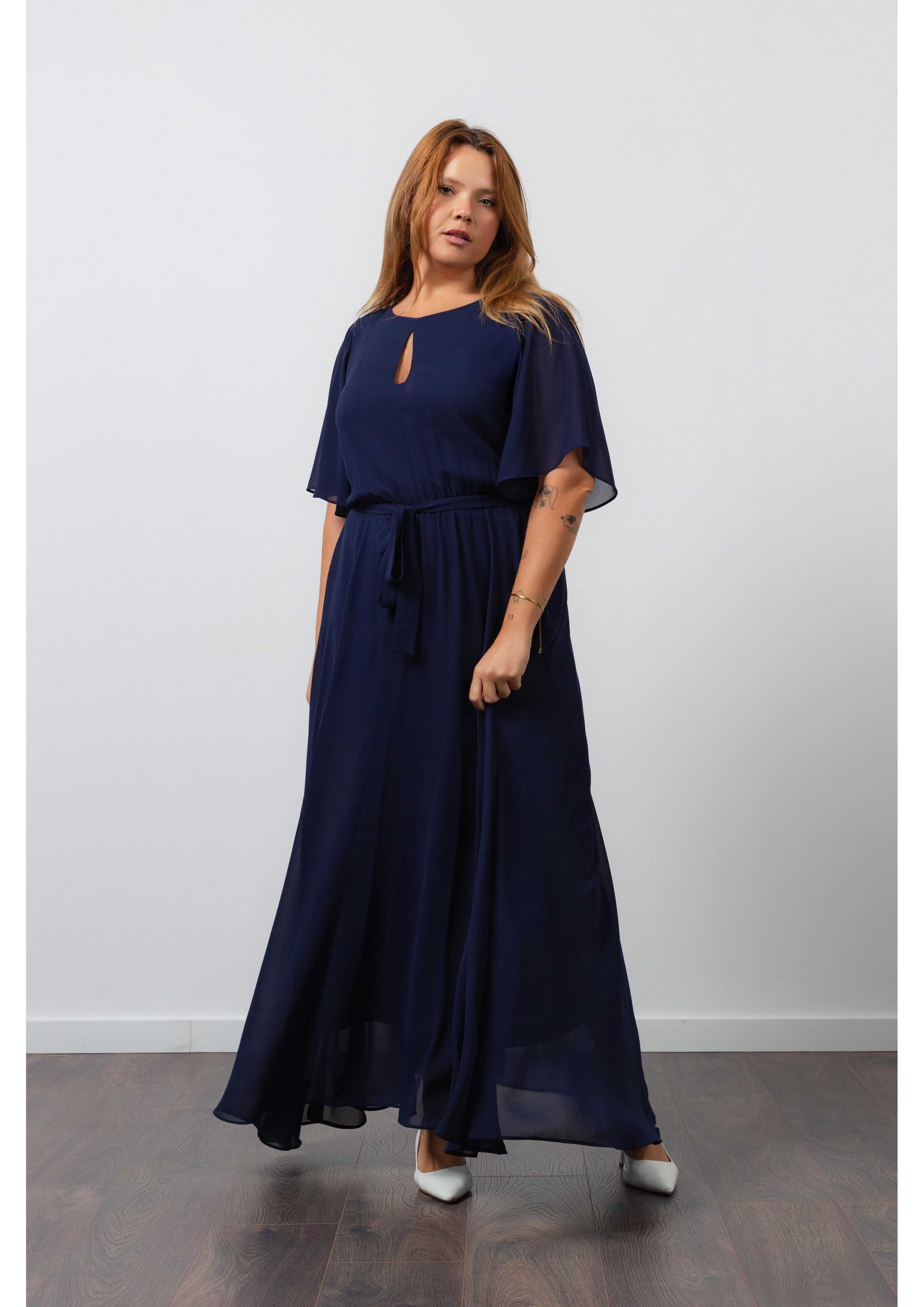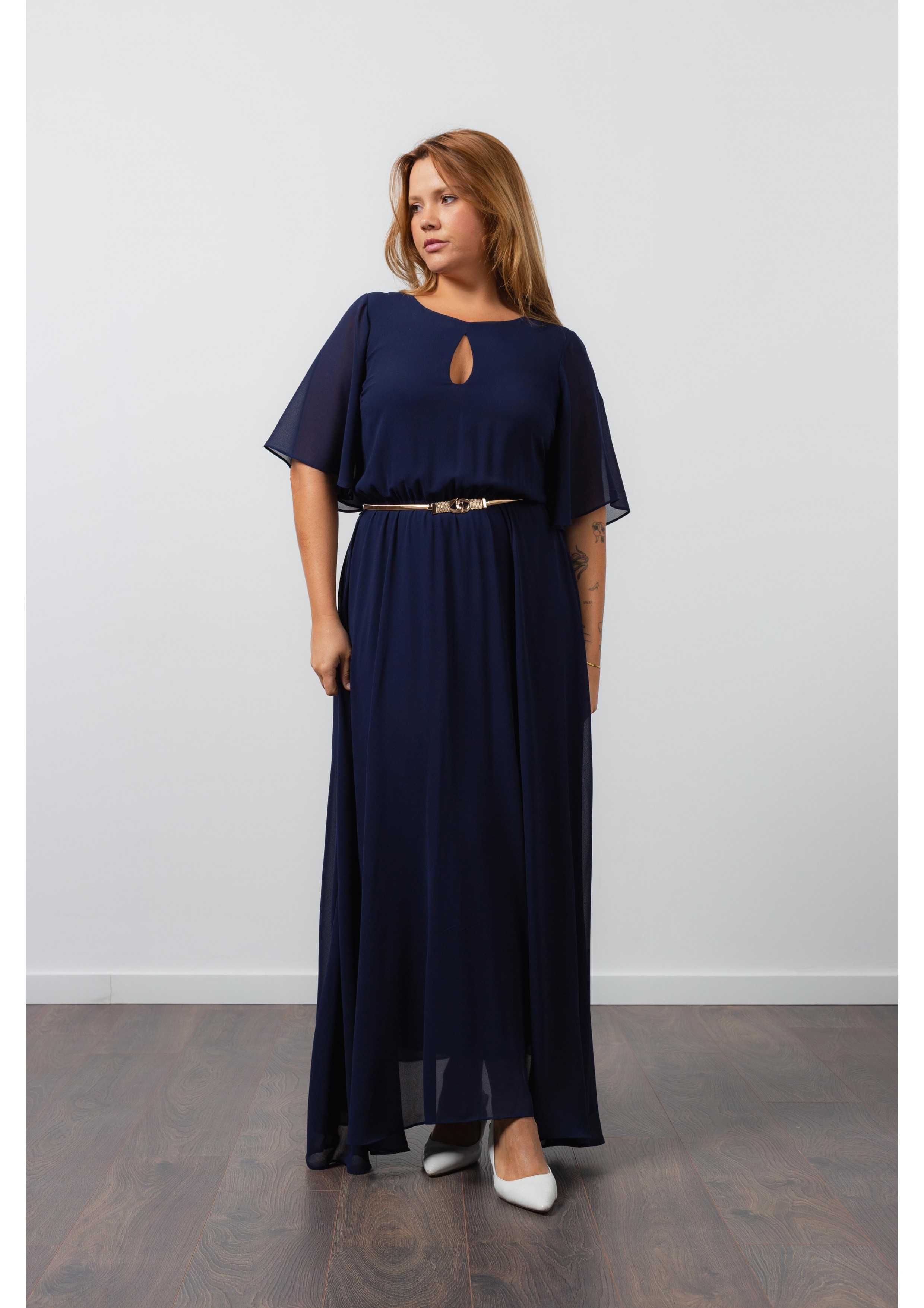 Robe en tissu uni, longue. Jupe évasée doublée. Découpe en forme de larme sur le devant. Fermeture au dos. Manche évasée 3/4. Collection : Printemps Été Disponible en Grandes Tailles Produit de conception et de fabrication propre. Nous sommes une marque de confection de vêtements avec plus de 50 ans d'expérience Modèle 1 : Taille 1.80m et porte la taille G Modèle 2 : Taille 1.70m et porte la taille XL Composition : 100%Polyester|94%Polyester 6%Élasthanne