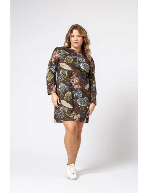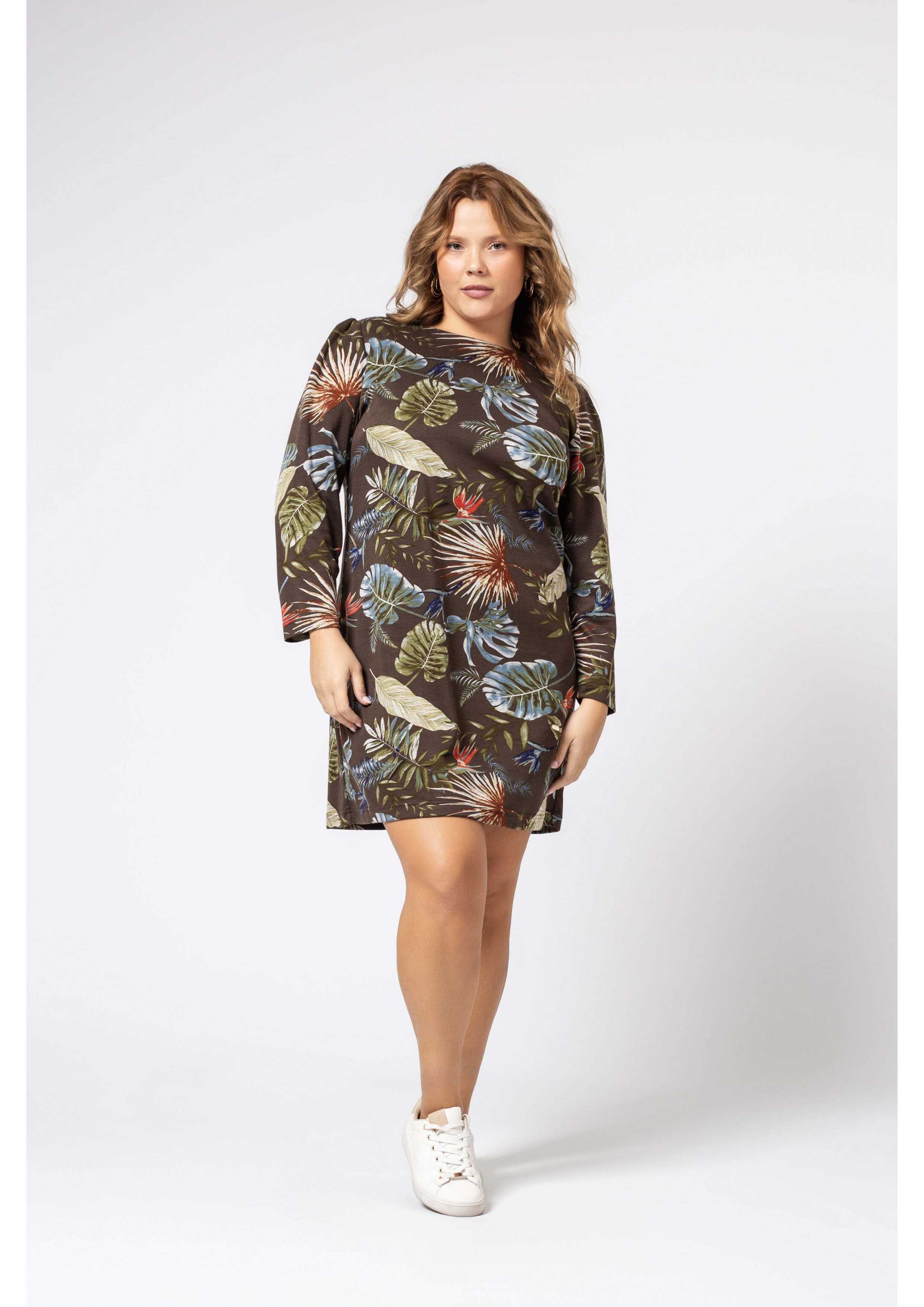 Robe en maille imprimée, manches longues, avec volant à l'épaule. Décolleté rond Collection : Automne Hiver Disponible en Taille Plus Produit de conception et de fabrication propre. Nous sommes une marque de confection de vêtements avec plus de 50 ans d'expérience Modèle : Hauteur 1.70m et porte la taille 2XL. Composition : 55% Polyester 45% Viscose - DOUBLURE 100% Polyester