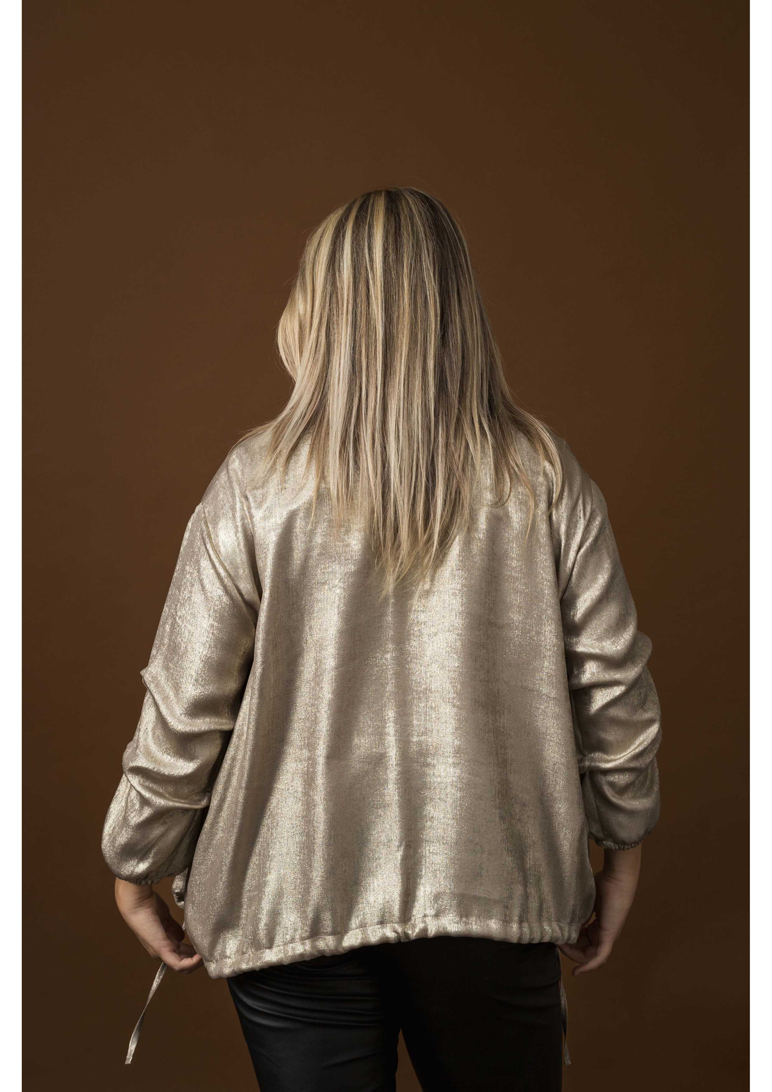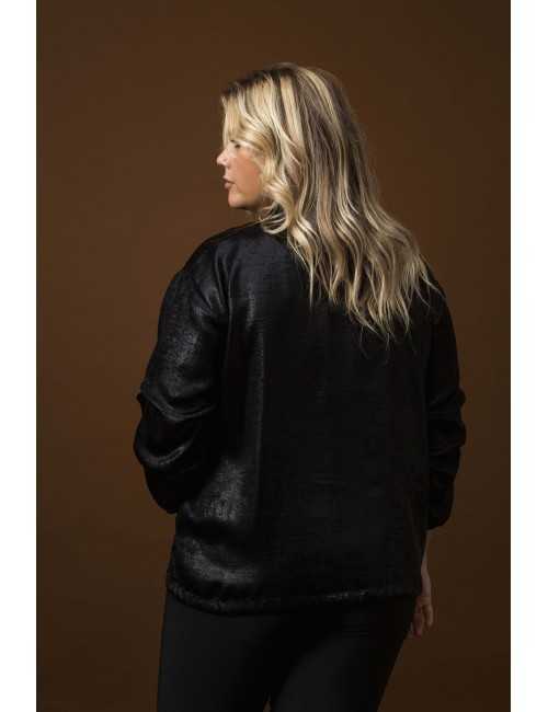 Veste en tissu modèle "bomber", fermeture à l'avant poches latérales, manches 3/4 avec clous et élastique à la base. fermeture à l'avant.