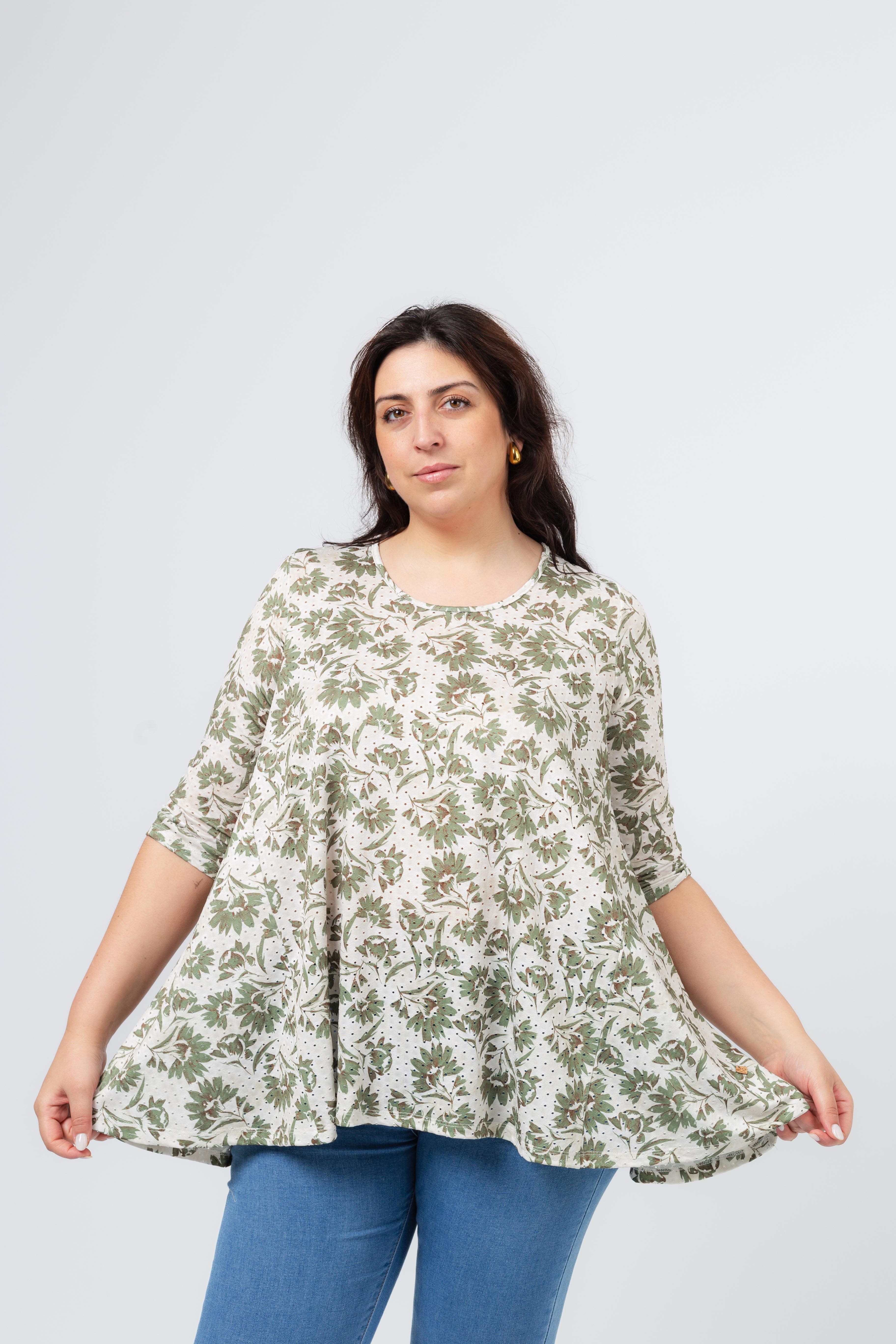 261027 - Túnica em malha estampada Coleção Primavera Verão Tamanhos Grandes