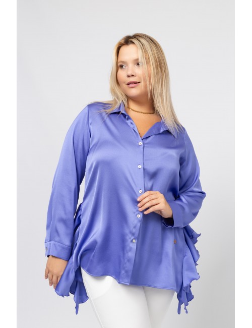 Blouse en tissu uni avec des détails et des fentes sur les côtés avec des volants Collection : Printemps Été Disponible en Grandes Tailles Produit de conception et fabrication propre. Nous sommes une marque de confection de vêtements avec plus de 50 ans d'expérience Modèle : Taille 1,70 m et porte la taille 2XL. Composition : 100% Polyester