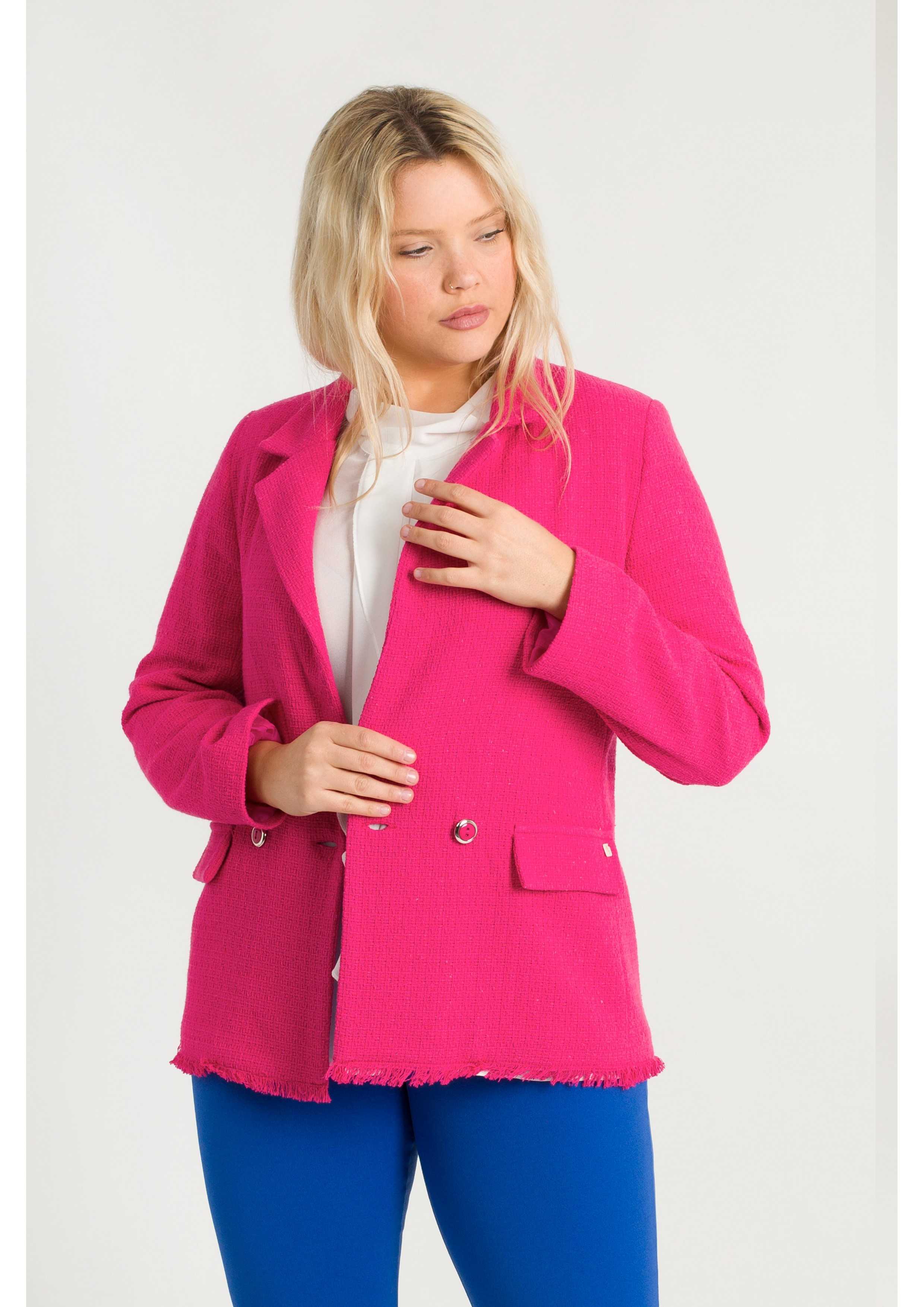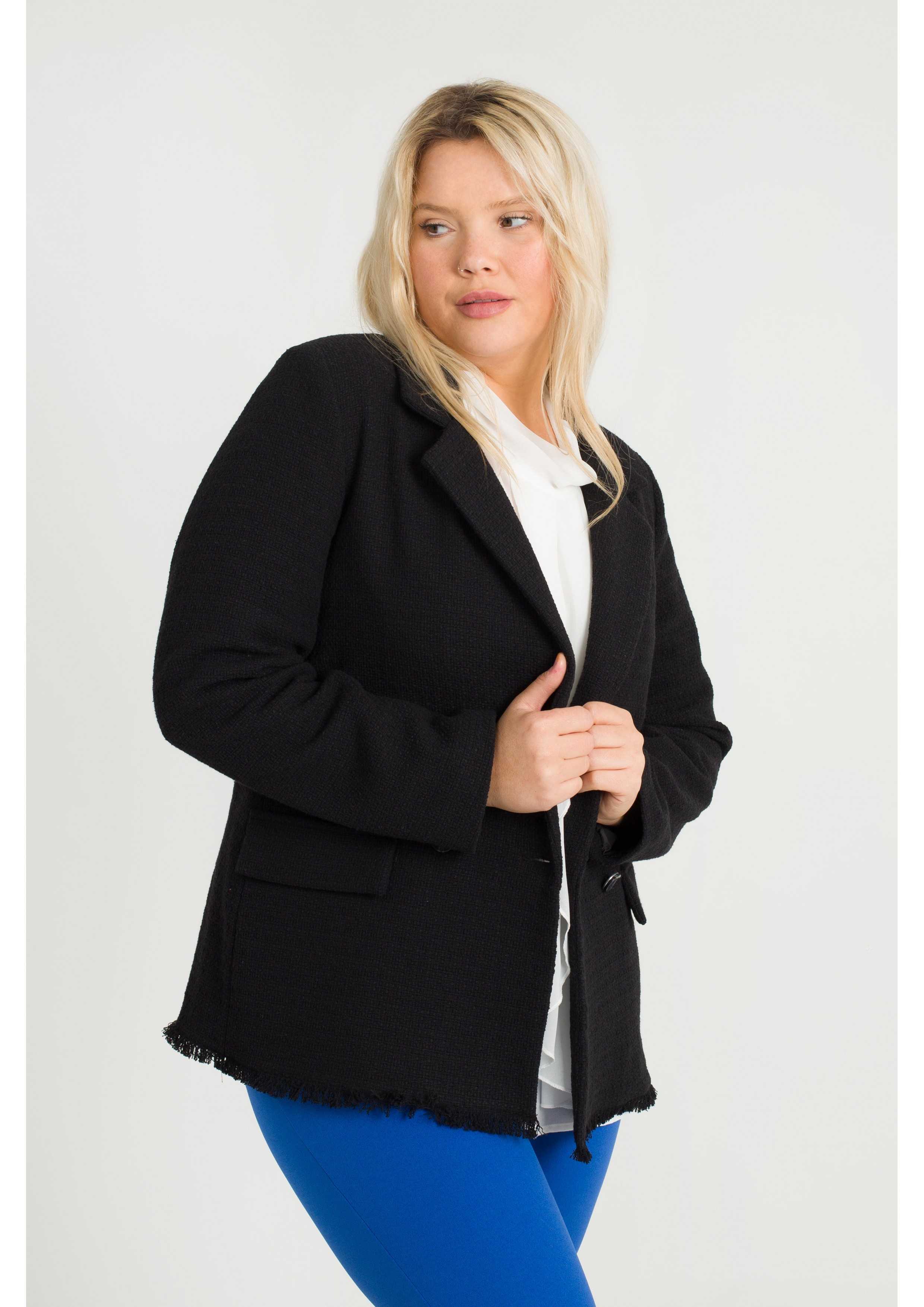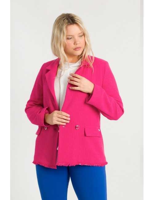 Blazer croisé, tissu à carreaux, poches à rabat, frange en tissu même à la base et aux manches. Il a 2 boutons Collection : Printemps Été Disponible en Tailles Grandes Produit de design et de fabrication propre. Nous sommes une marque de confection de vêtements avec plus de 50 ans d'expérience. Modèle : Taille 1,70 m et porte la taille 2XL en bleu, noir et perle. Modèle : Taille 1,65 m et porte la taille 3XL en fuchsia. Composition : Extérieur : 65 % Coton 30 % Polyester 5 % OF / Doublure : 100 % Polyester