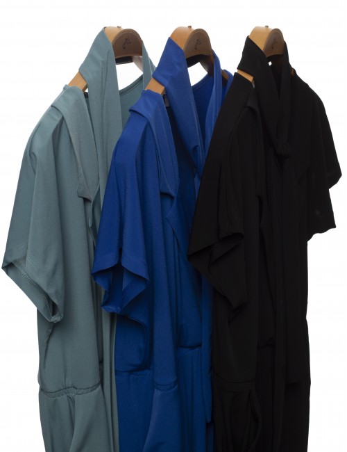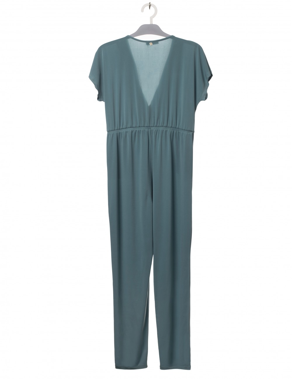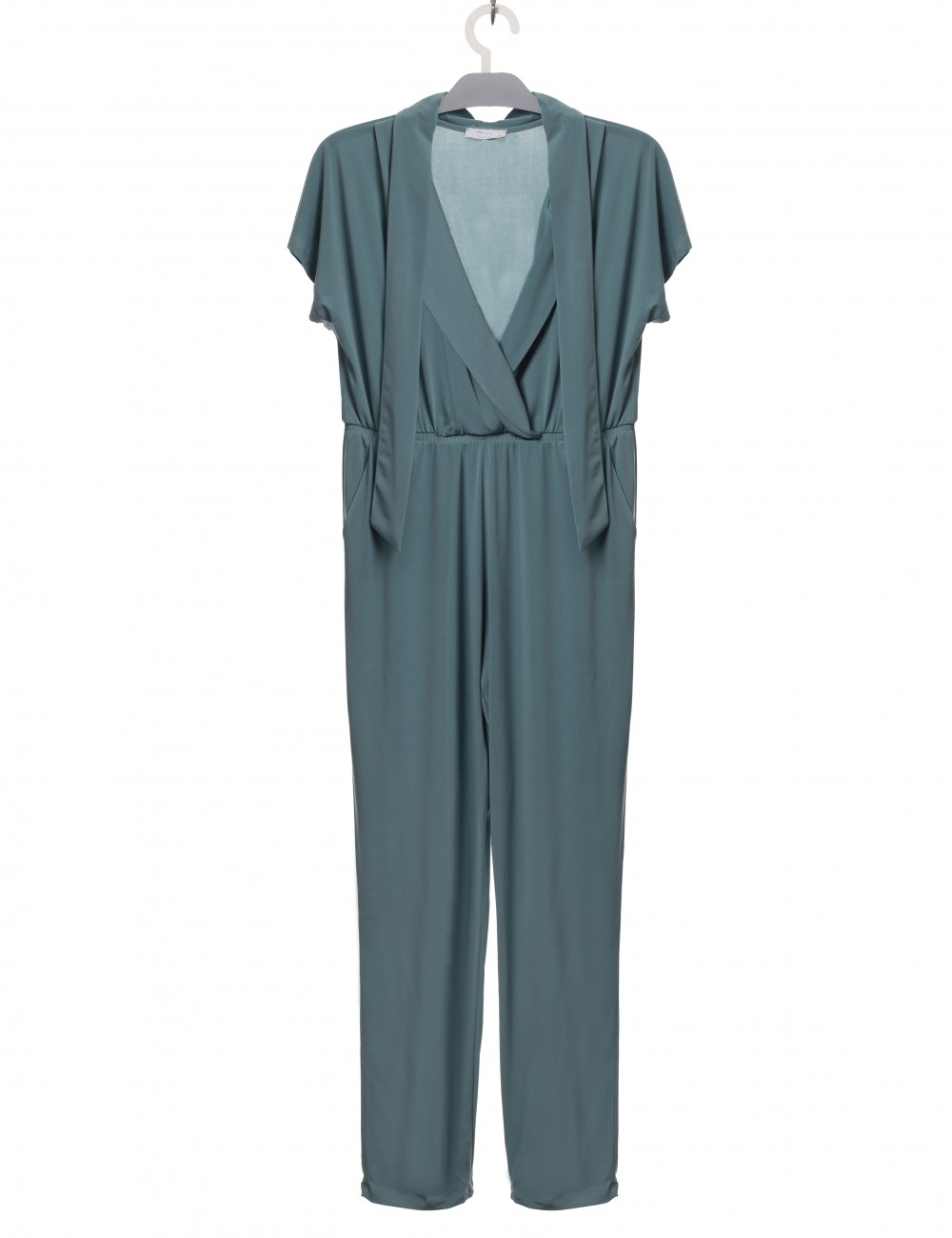 Combinaison en maille, manches courtes, retournées à l'avant. Élastique à la taille. Ceinture libre. Poches latérales. Collection : Printemps Été Modèle : Taille 1-65m et porte la taille 3XL en bleu. Modèle : Taille 1.70m et porte la taille 2XL en vert.