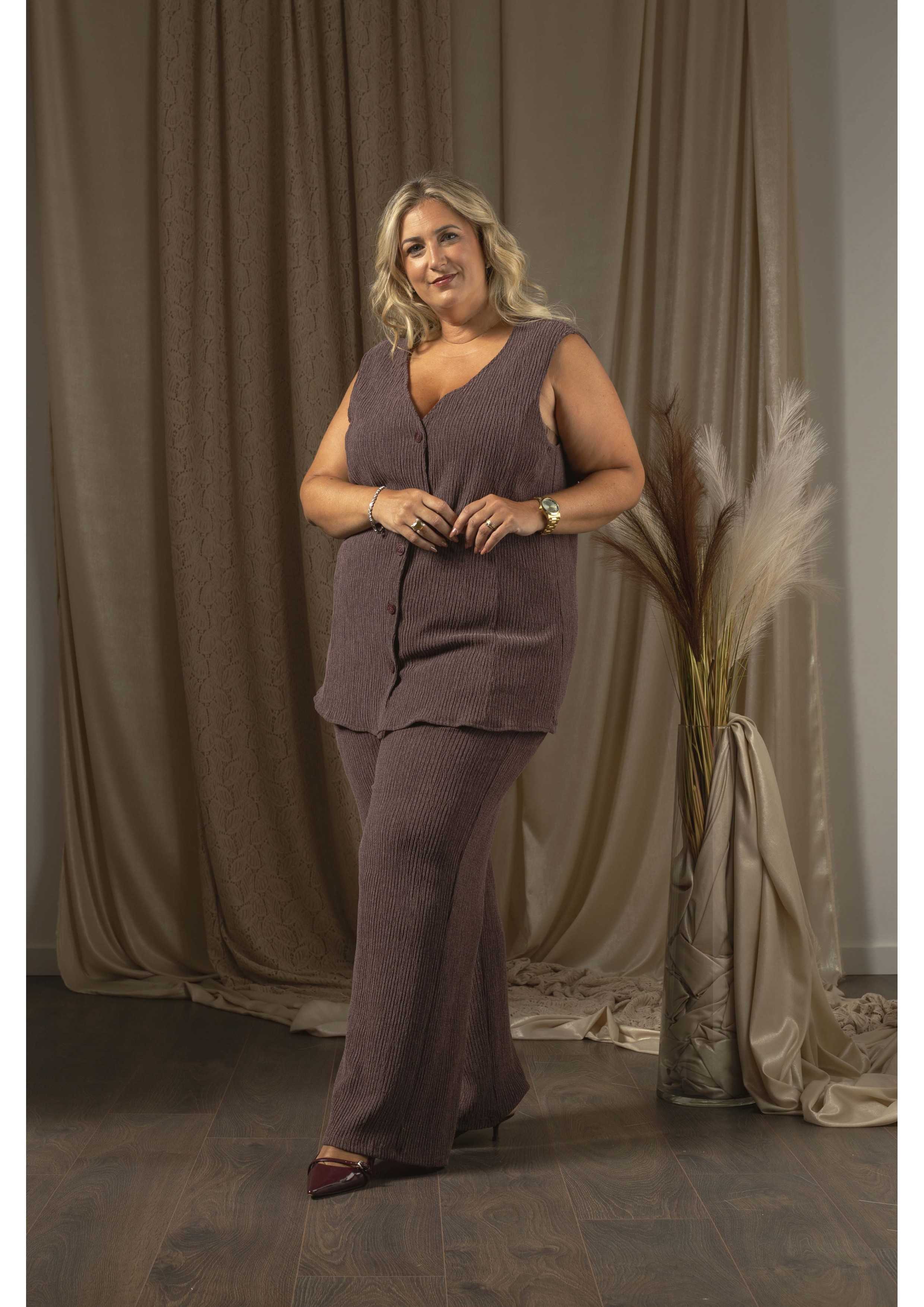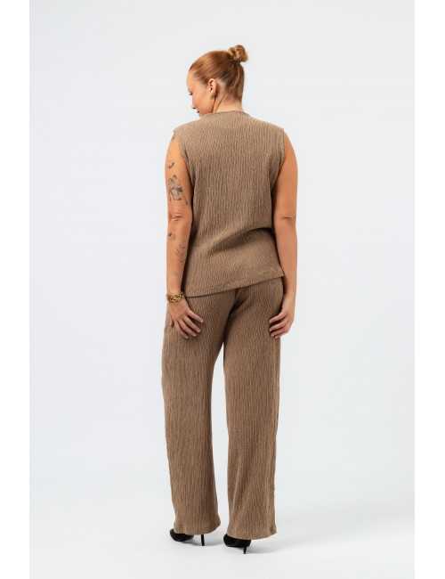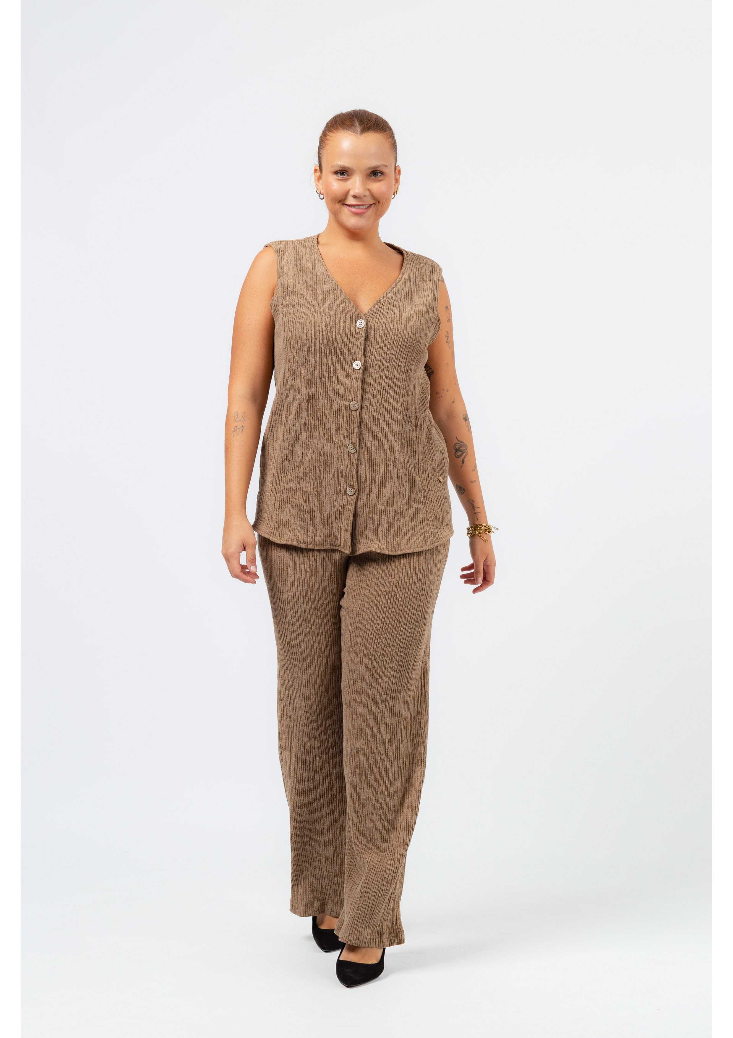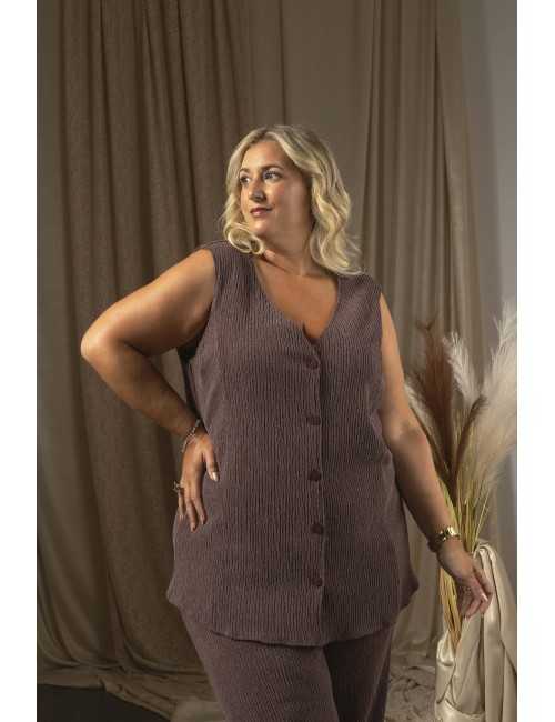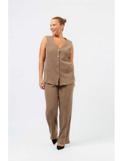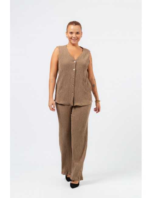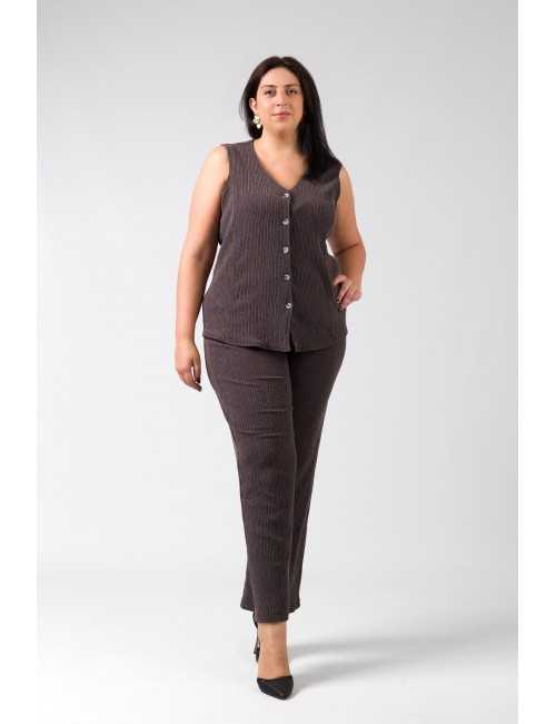 Ensemble en maille unie, côtelée de gilet et pantalon. Pantalon avec élastique recouvert. Gilet doublé à l'avant et demi-dos. Base ronde, se ferme avec des boutons. Collection : Automne Hiver Disponible en Grandes Tailles Produit à conception et fabrication propre. Nous sommes une marque de confection de vêtements avec plus de 50 ans d'expérience Modèle : Taille 1,65 m et porte la taille 3XL. Modèle : Taille 1,70 m et porte la taille XL. Modèle : Taille 1,73 m et porte la taille 3XL. Composition : 78% Polyester 21% Viscose 1% Élasthanne