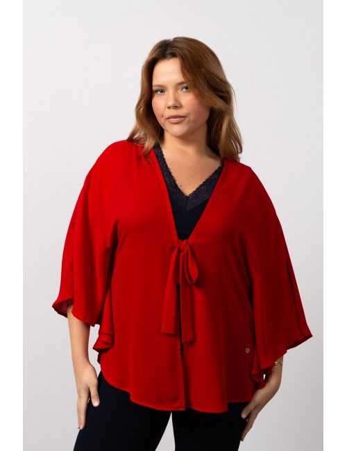Veste en tissu uni fin. Modèle type poncho. Se ferme avec des bretelles en tissu à l'avant. Modèle arrondi à la base. Collection : Printemps Été Disponible en Grandes Tailles Produit conçu et fabriqué par nos soins. Nous sommes une marque de confection de vêtements avec plus de 50 ans d'expérience Modèle : Taille 1,70 m et porte la taille XL. Composition : 100 % Polyester