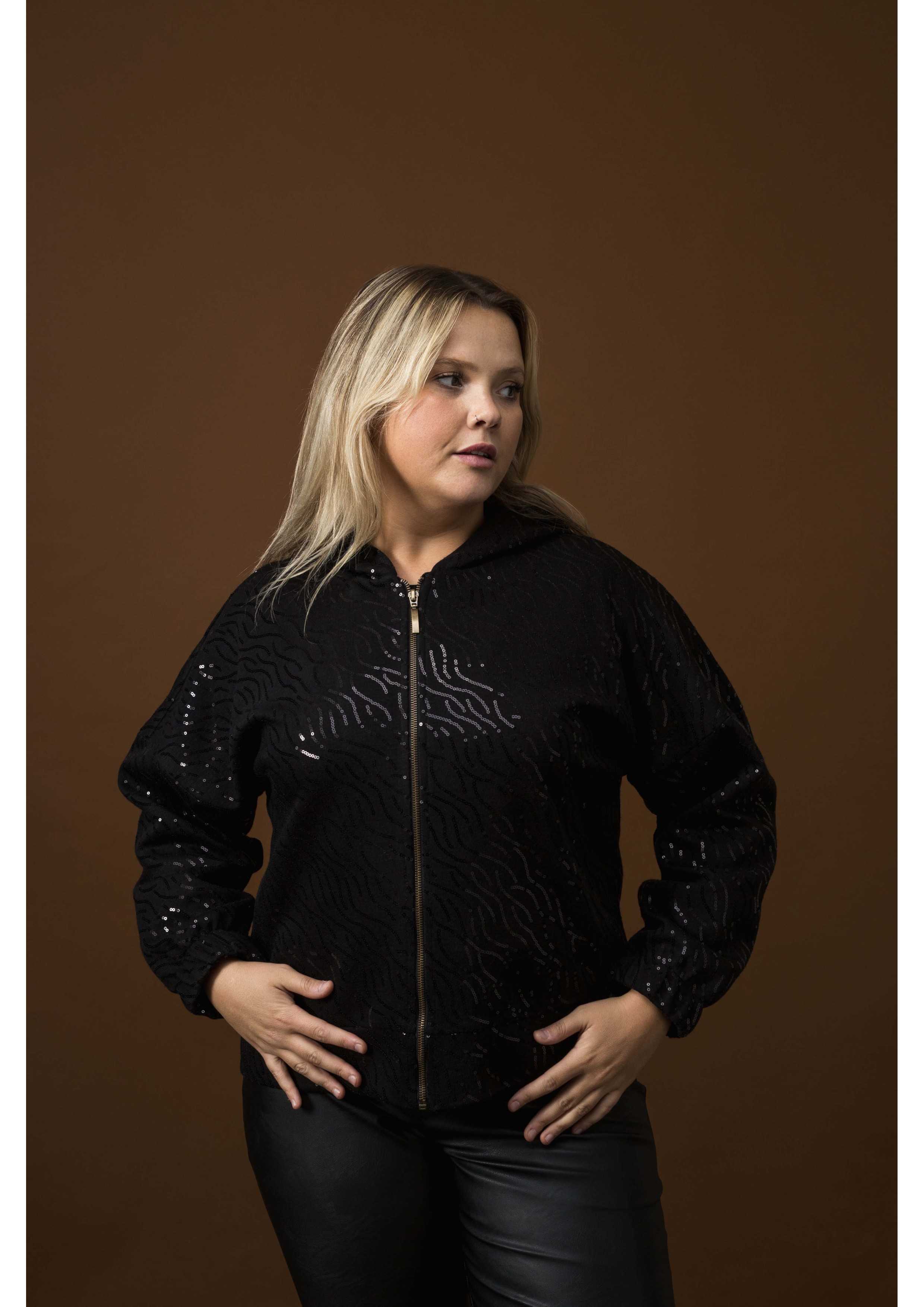 Veste en maille avec sequins, fermeture à l'avant, poches latérales, manches longues avec élastique Collection : Automne Hiver Disponible en Grandes Tailles Produit de conception et de fabrication propre. Nous sommes une marque de confection de vêtements avec plus de 50 ans d'expérience Modèle : Taille 1.70m et porte la taille 2XL. Composition : 87% Polyester 10% Viscose 3% Élasthanne