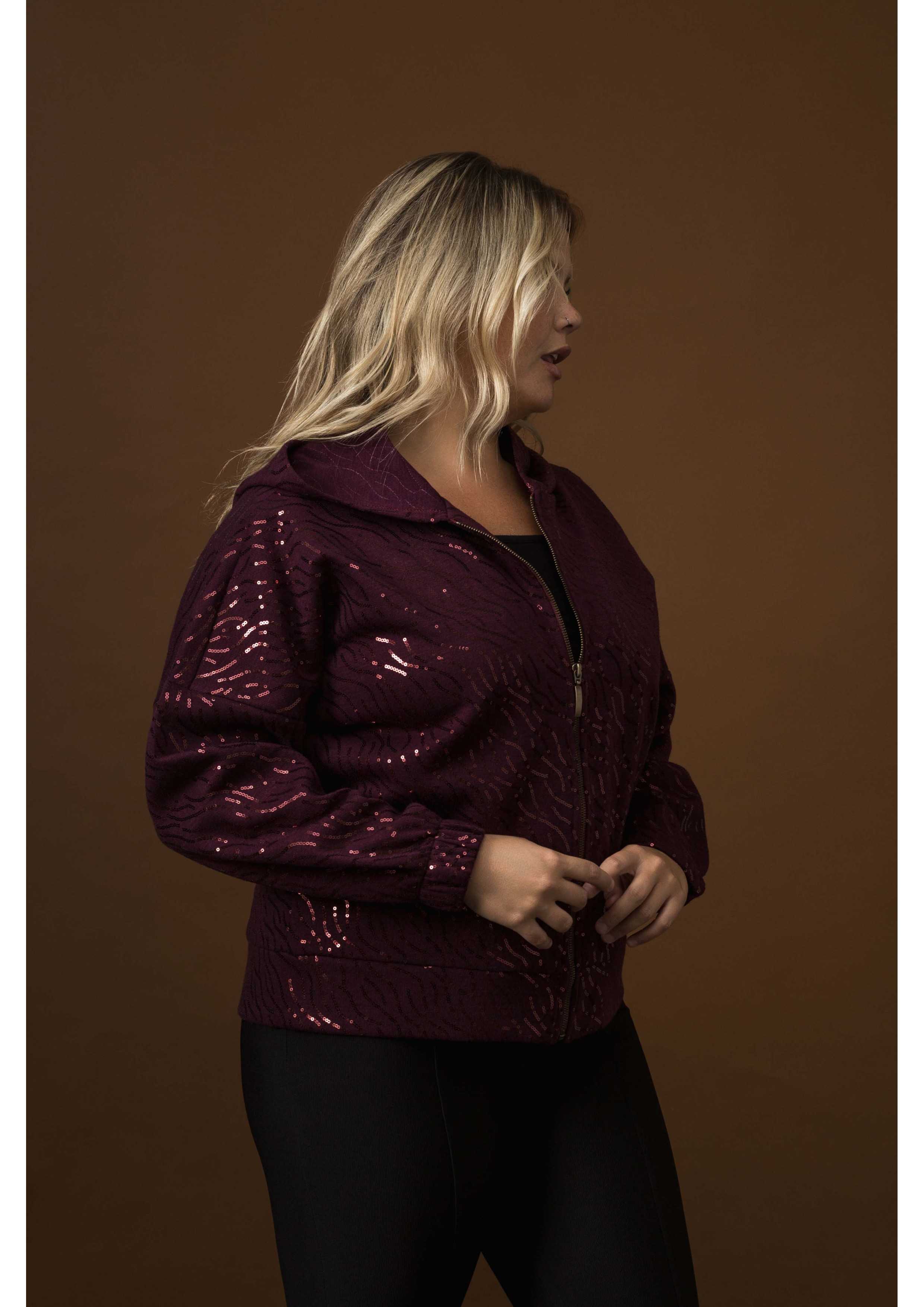 Veste en maille avec sequins, fermeture à l'avant, poches latérales, manches longues avec élastique Collection : Automne Hiver Modèle : Taille 1.70m et porte la taille 2XL.