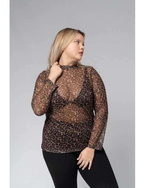 Pull en résille imprimé tigre Collection : Automne Hiver Modèle : Taille 1,70 m et porte la taille 2XL. Modèle : Taille 1,63 m et porte la taille 2XL.