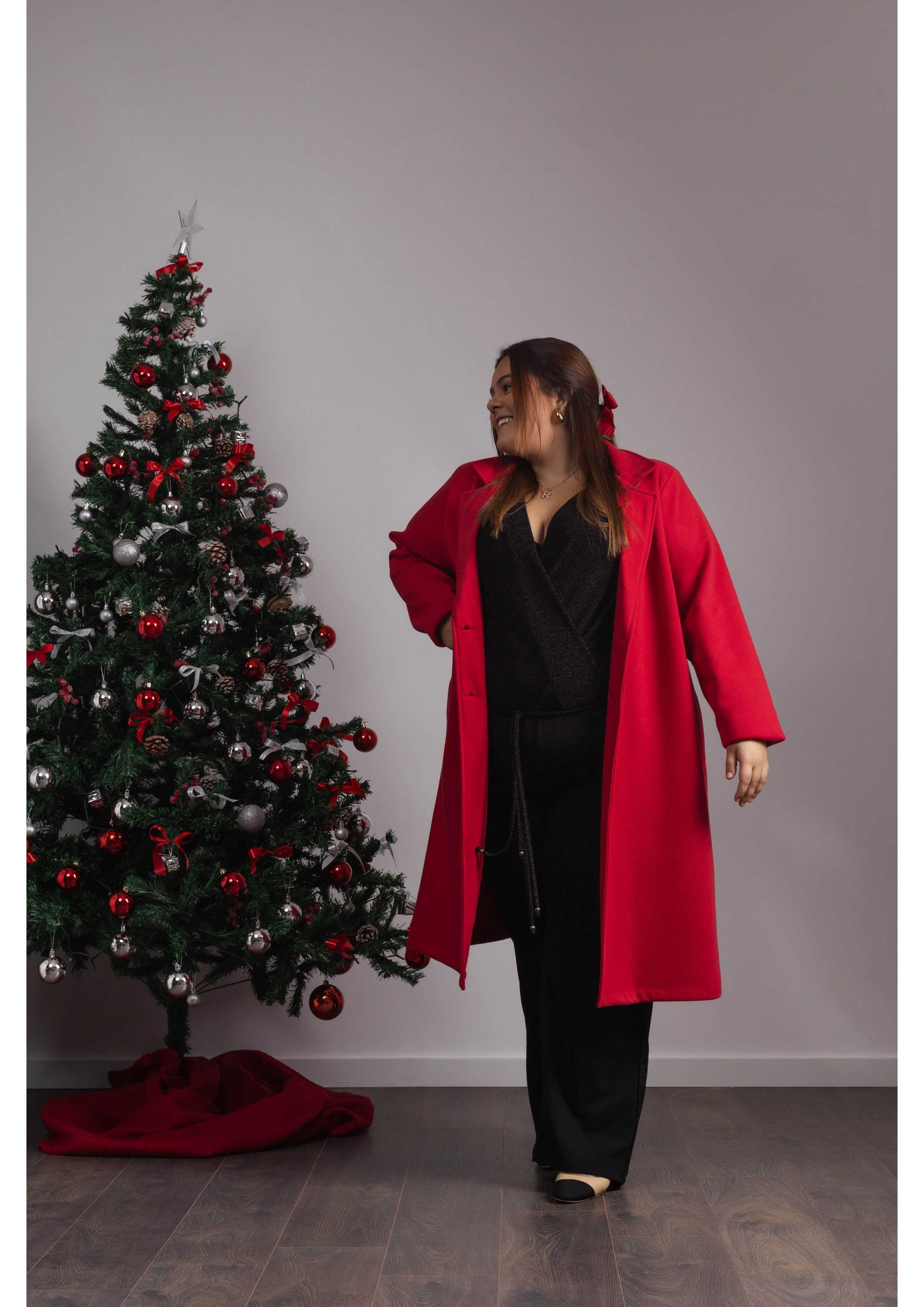 Veste en tissu uni, poches plaquées latérales. Collection : Automne Hiver Modèle : Taille 1,67 m et porte la taille G, en rouge Modèle : Taille 1,70 m et porte la taille 2XL, en noir