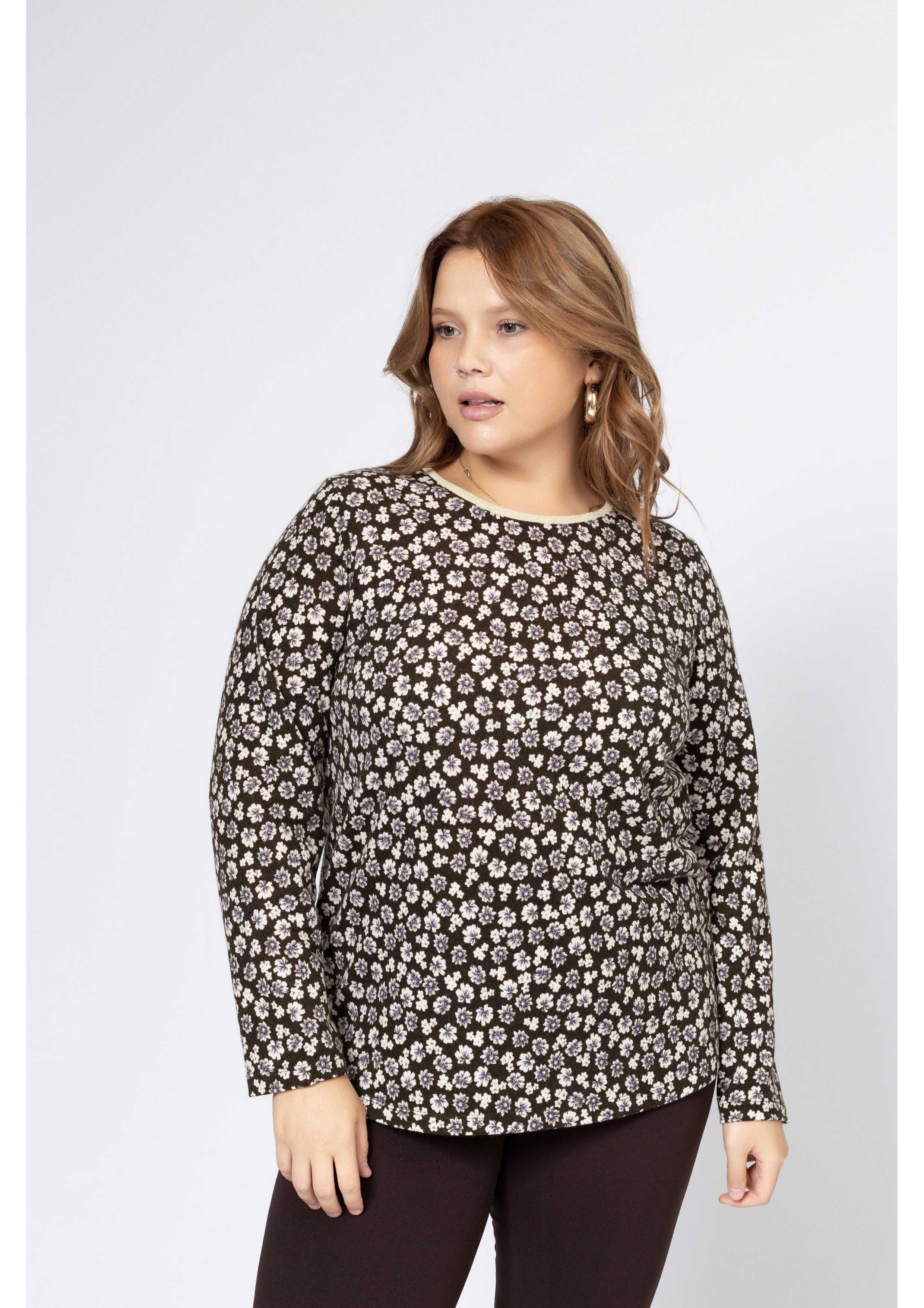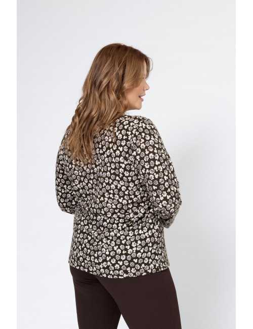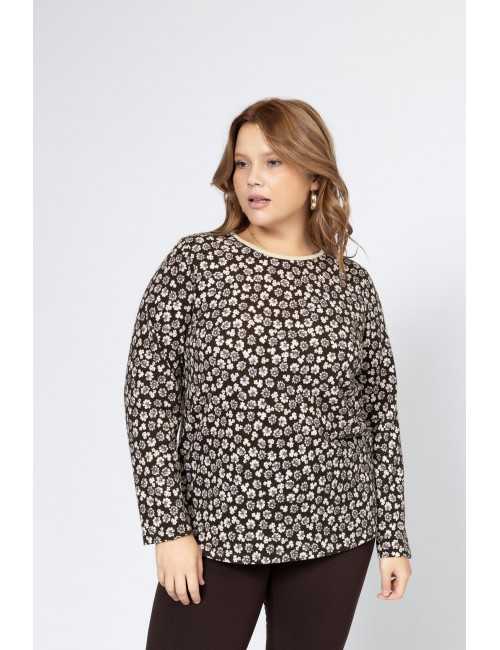 Pull en maille imprimée, décolleté devant avec liseré en maille unie avec fil lurex, manches longues. Coupe droite. Collection : Automne Hiver Disponible en Grandes Tailles Produit de conception et de fabrication propres. Nous sommes une marque de confection de vêtements avec plus de 50 ans d'expérience Modèle : Taille 1.70m et porte la taille 2XL. Composition : 95% Polyester 5% Élasthanne