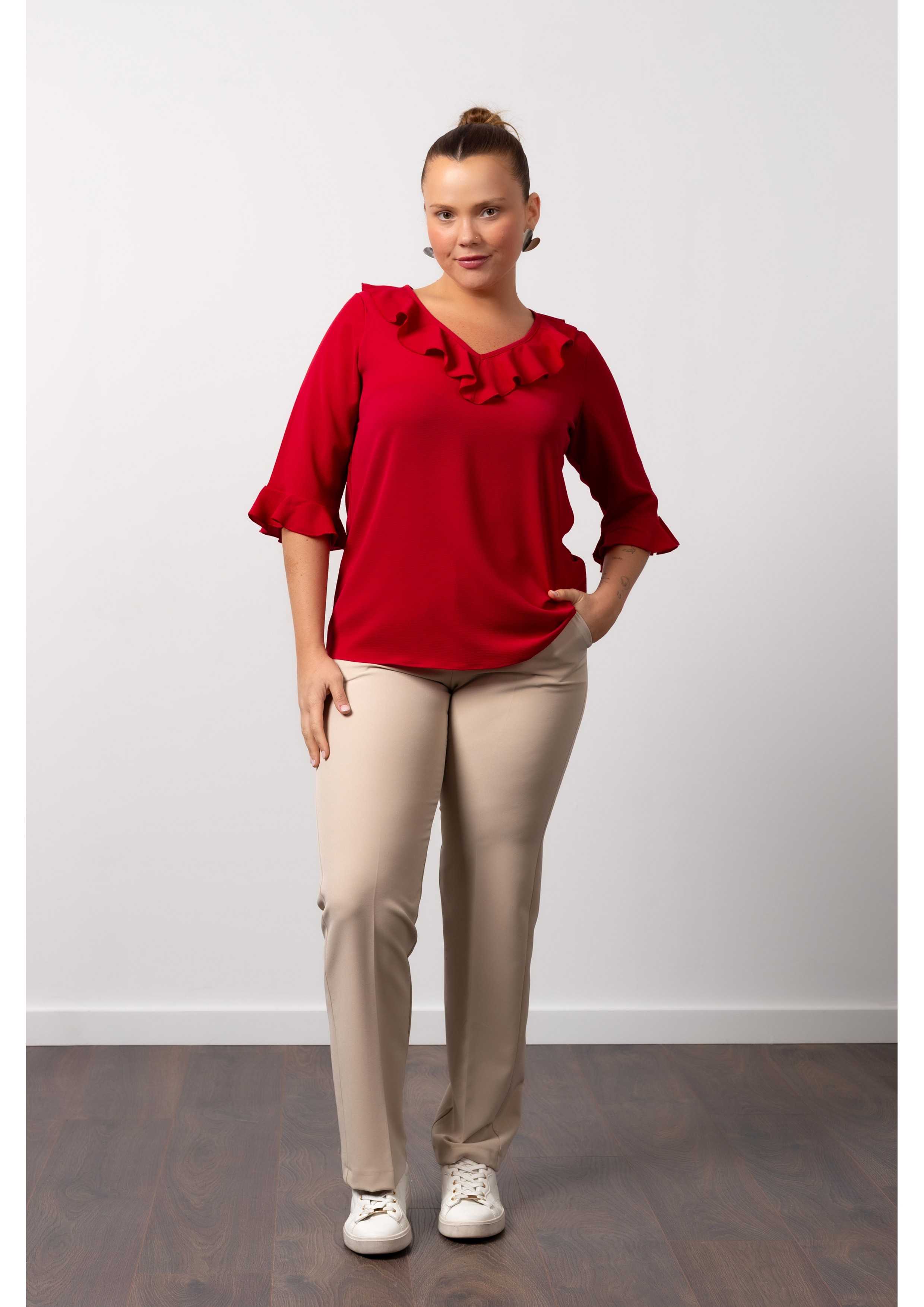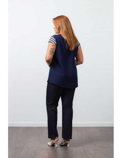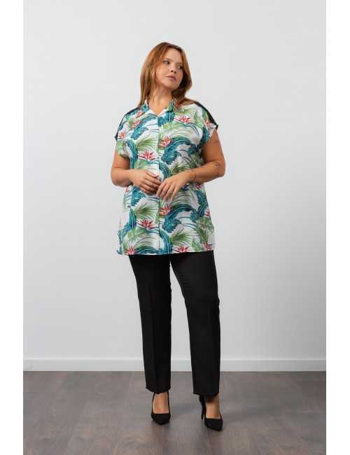 Pantalon en tissu lisse, poches latérales, fermeture et bouton à l'avant. Élastique uniquement sur les côtés, passants de ceinture. Collection : Printemps Été Disponible en Grandes Tailles Produit de conception et de fabrication propres. Nous sommes une marque de confection de vêtements avec plus de 50 ans d'expérience Modèle : Hauteur 1.70m et porte la taille 42. Composition : 95% Polyester 5% Élasthanne